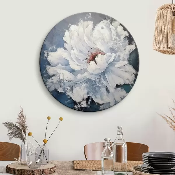 Quadri rotondi Fiore bianco su sfondo blu r37262
