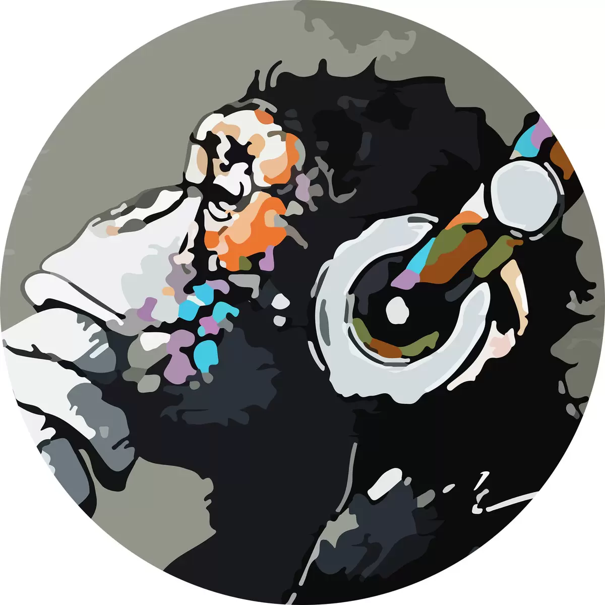 Immagine Scimmia in cuffia su sfondo grigio Nr r37269