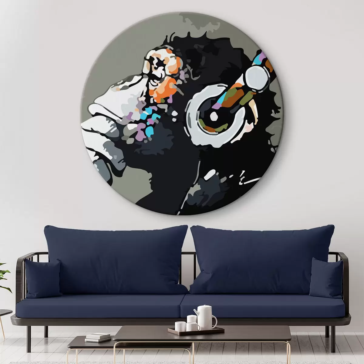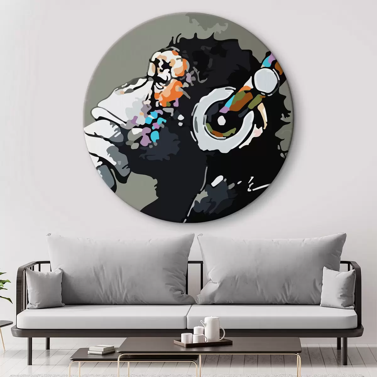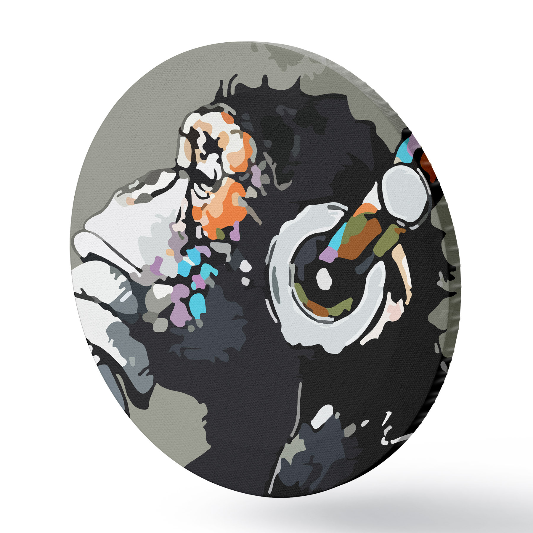 Quadri rotondi Scimmia in cuffia su sfondo grigio r37269