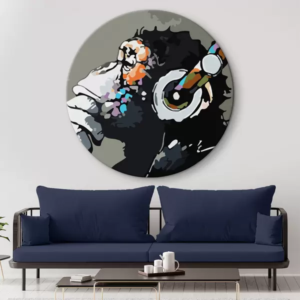 Quadri rotondi Scimmia in cuffia su sfondo grigio r37269