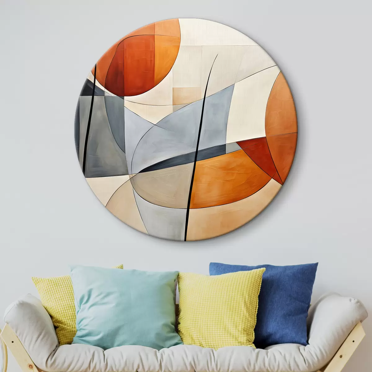 Quadri rotondi Astrazione geometrica in tonalità arancione r37285