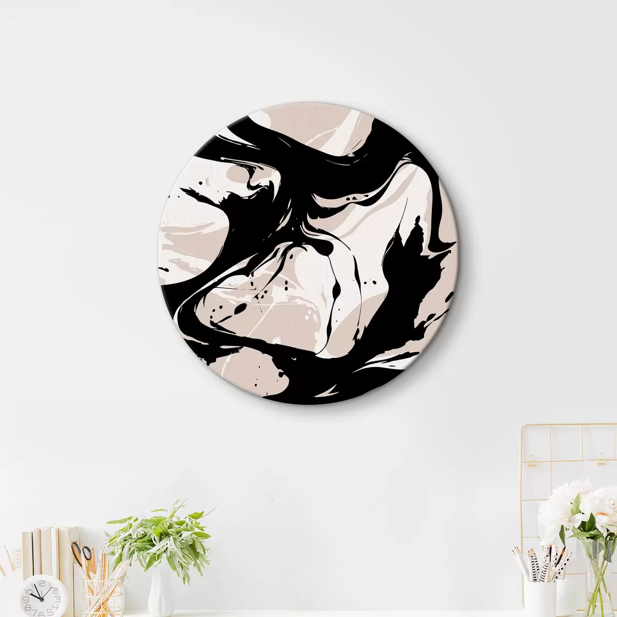 Quadri rotondi Vortice bianco e nero su sfondo beige r37286