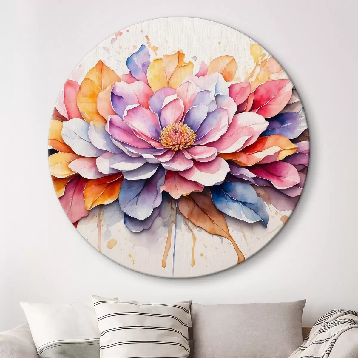 Quadri rotondi Fiore con acquerelli e petali multicolori r37333