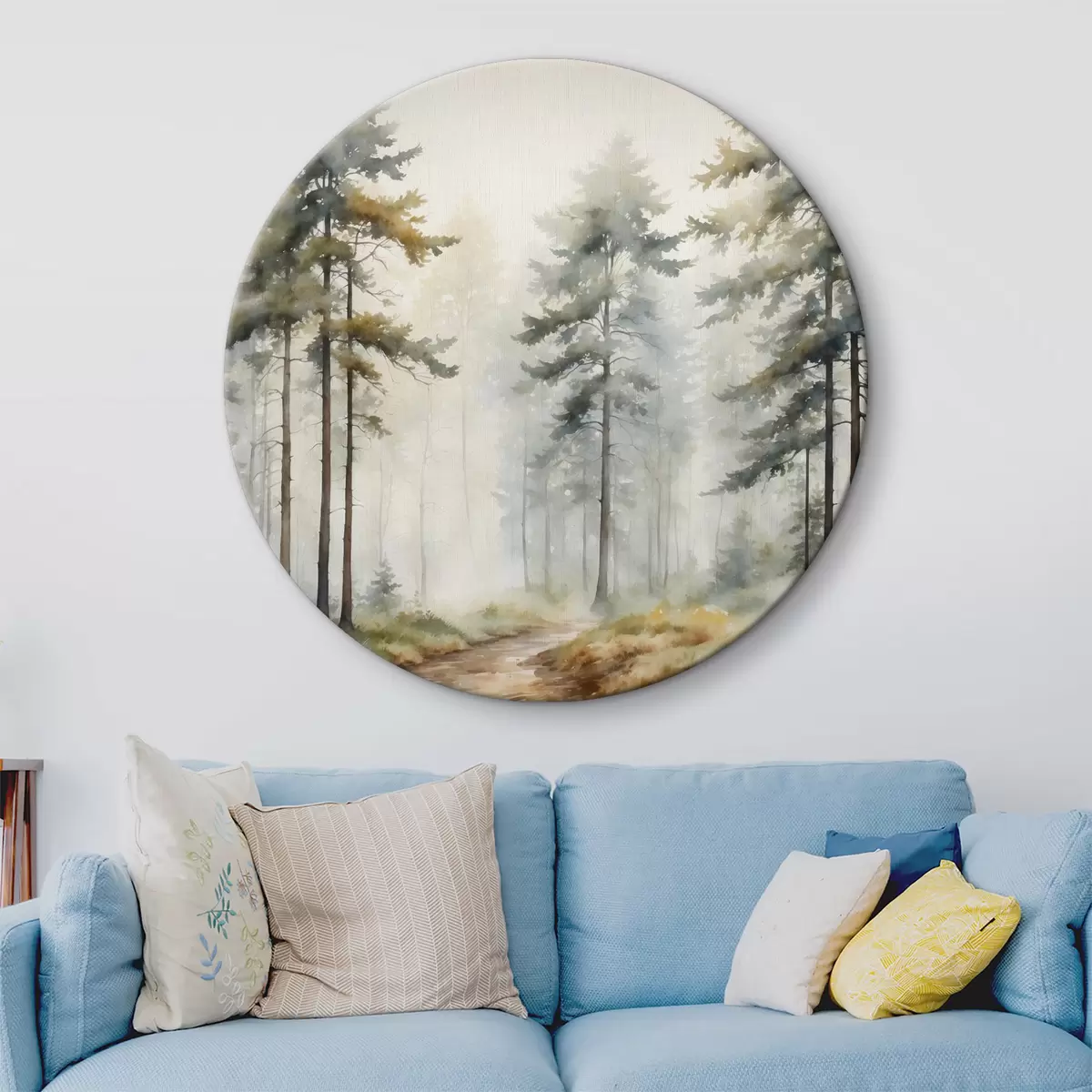 Quadri rotondi Sentiero forestale acquerello  r37338