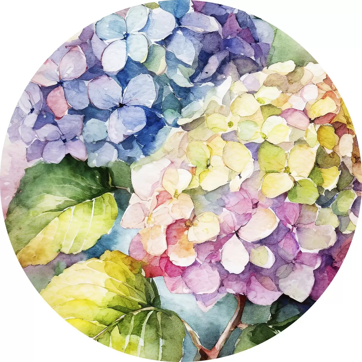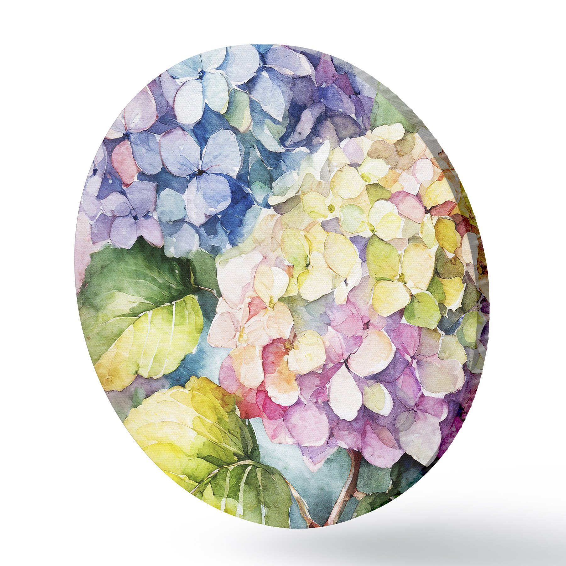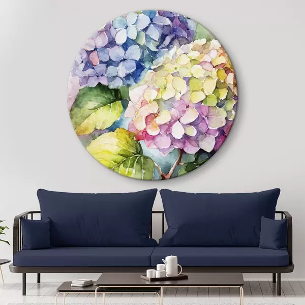 Quadri rotondi Acquerello di ortensie, fiori estivi, colori naturali r37342