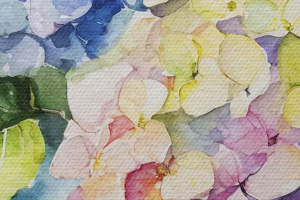 Immagine Acquerello di ortensie, fiori estivi, colori naturali Nr r37342