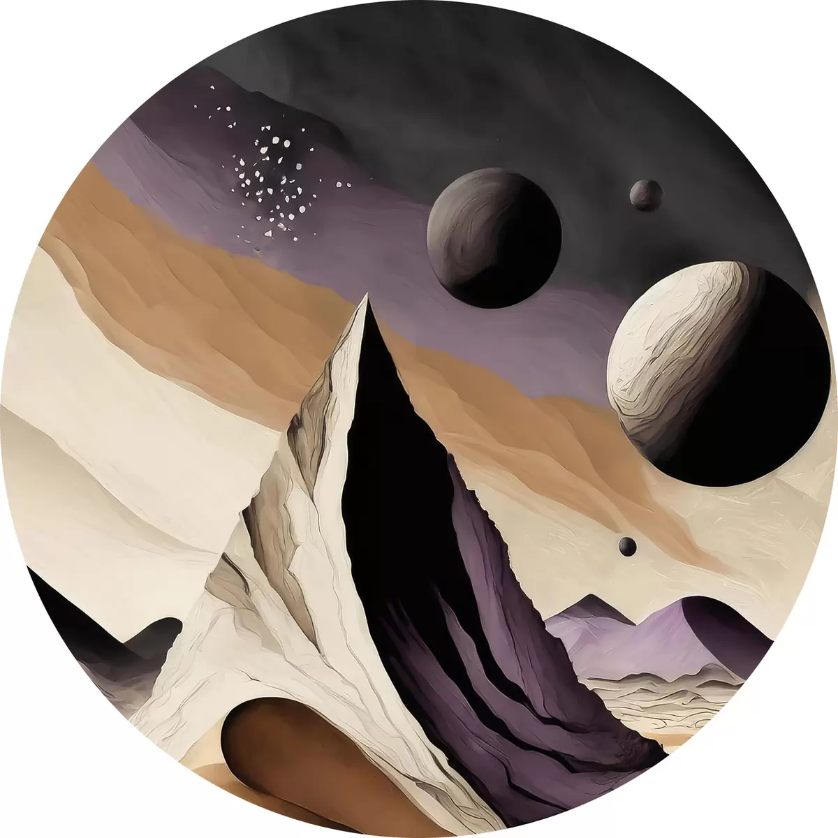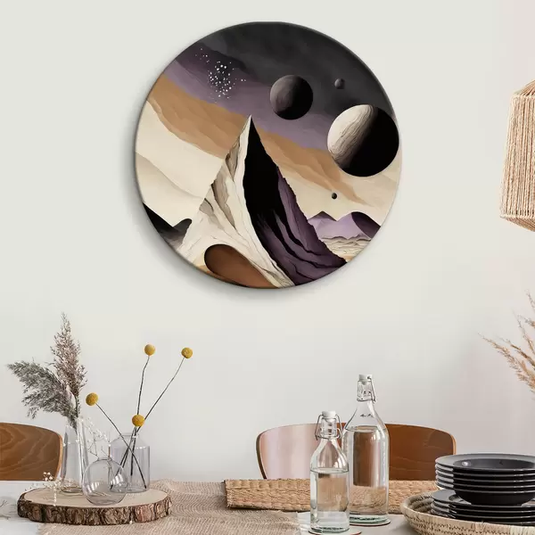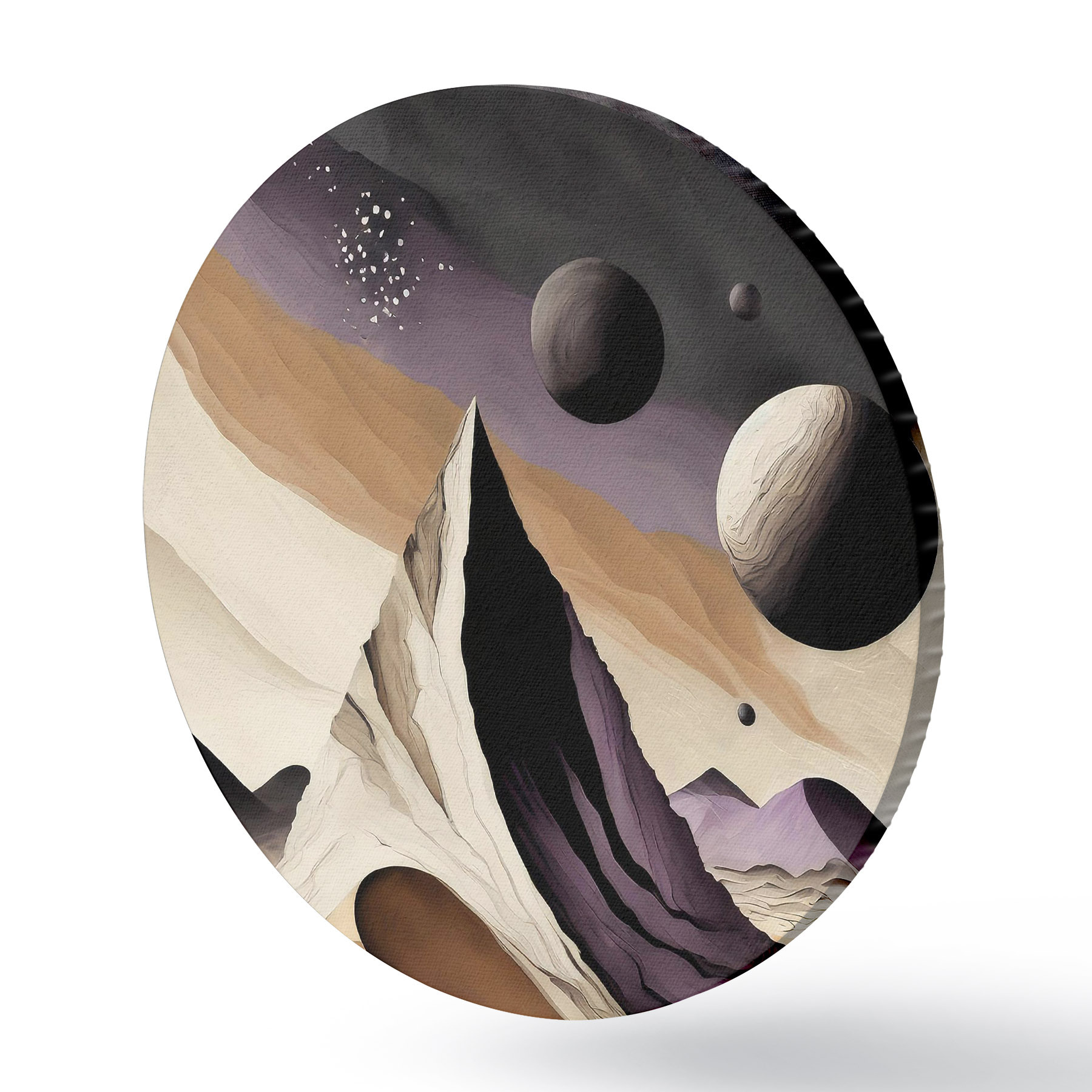 Quadri rotondi Arte astratta, deserto, montagne e rocce, viola e beige, spazio r37362