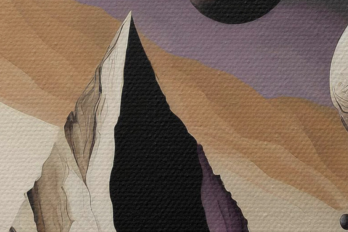 Immagine Arte astratta, deserto, montagne e rocce, viola e beige, spazio Nr r37362
