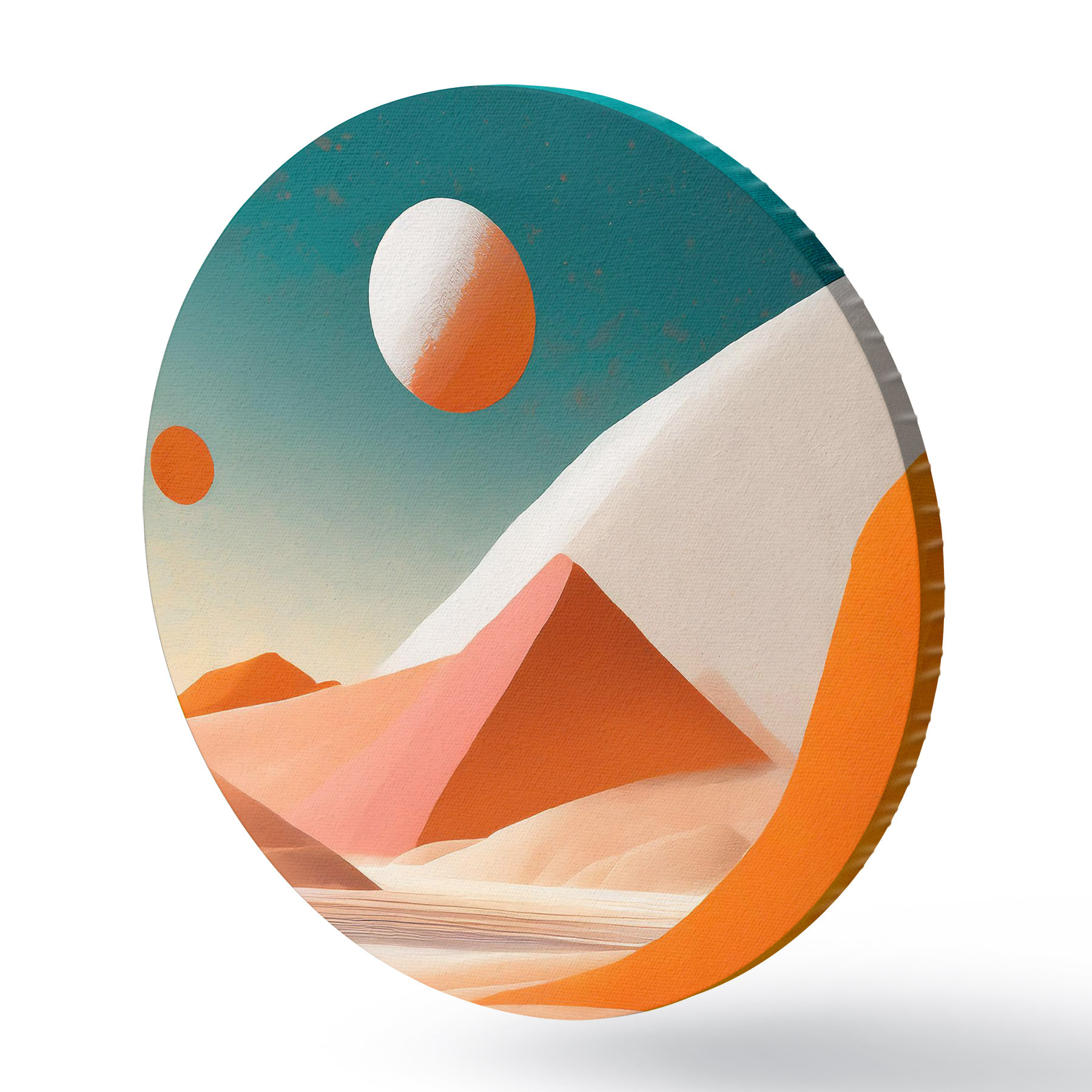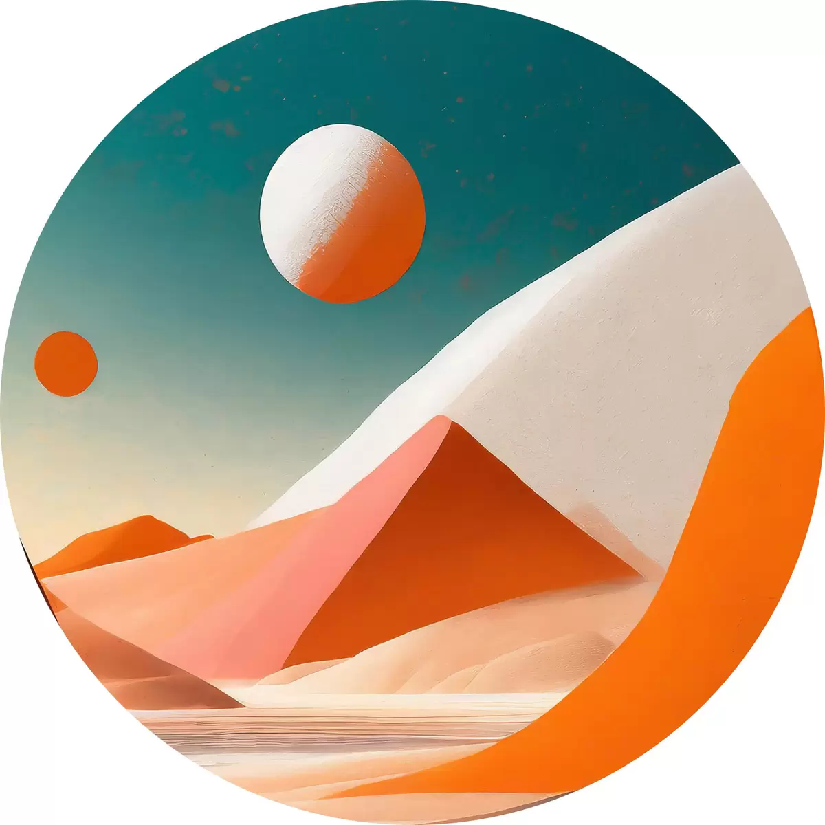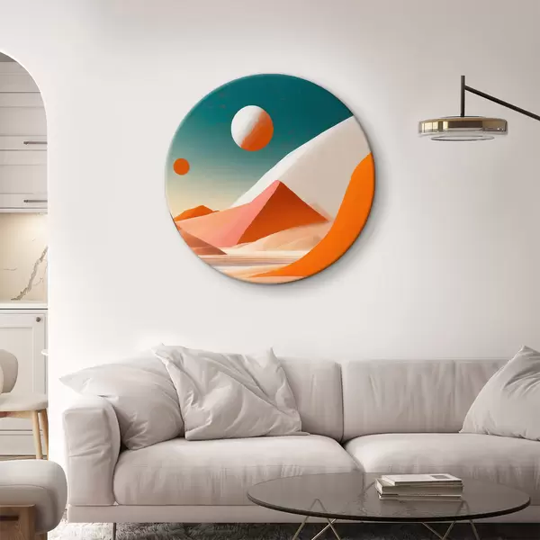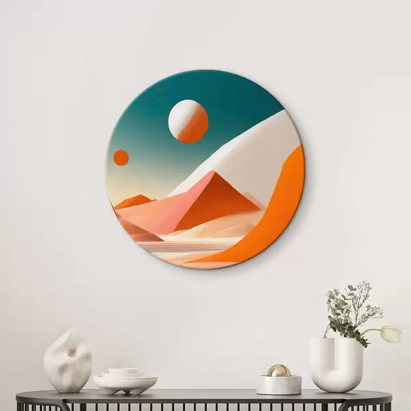 Quadri rotondi Paesaggio desertico con colline di sabbia e uno specchio d'acqua r37367