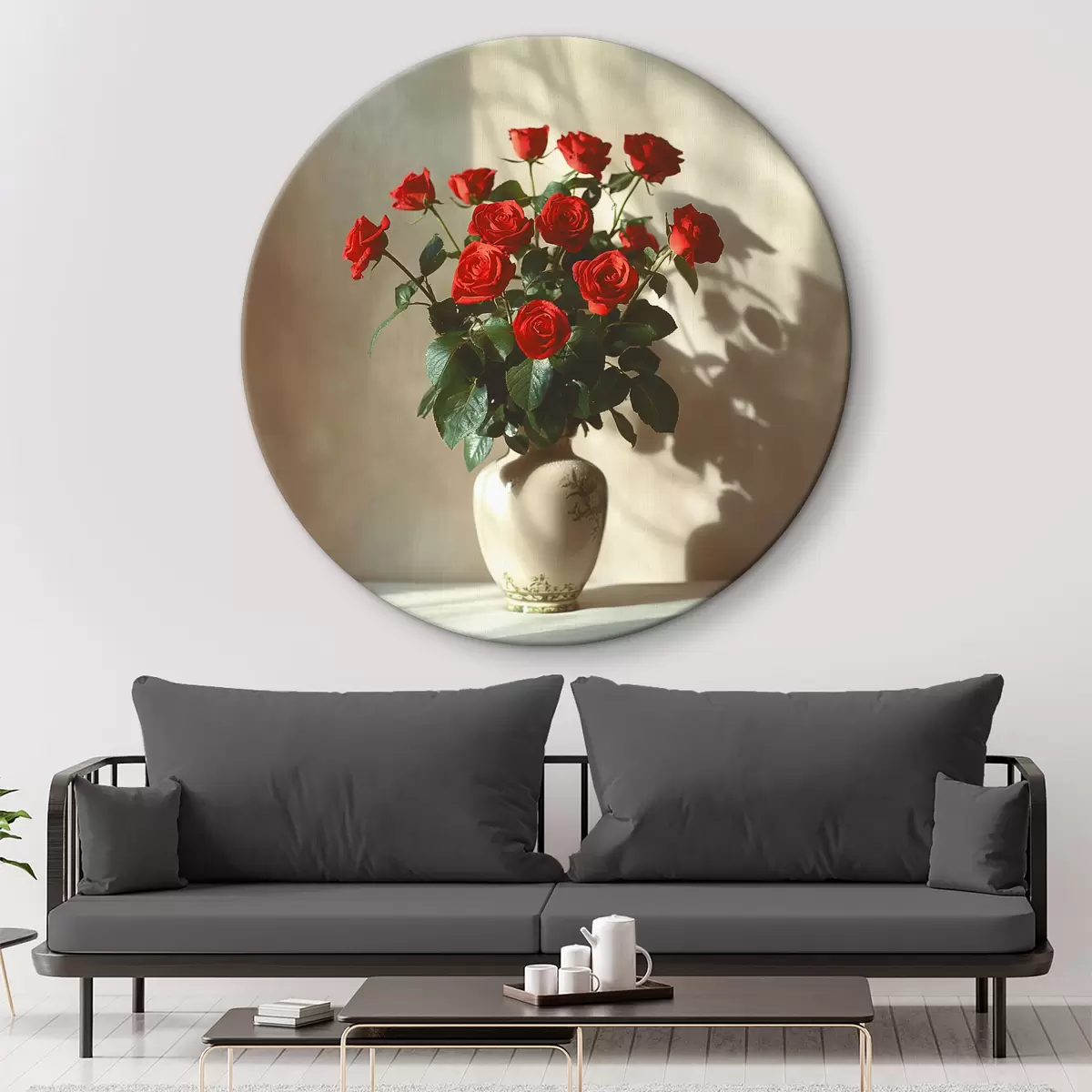 Quadri rotondi Vaso con rose rosse r37378