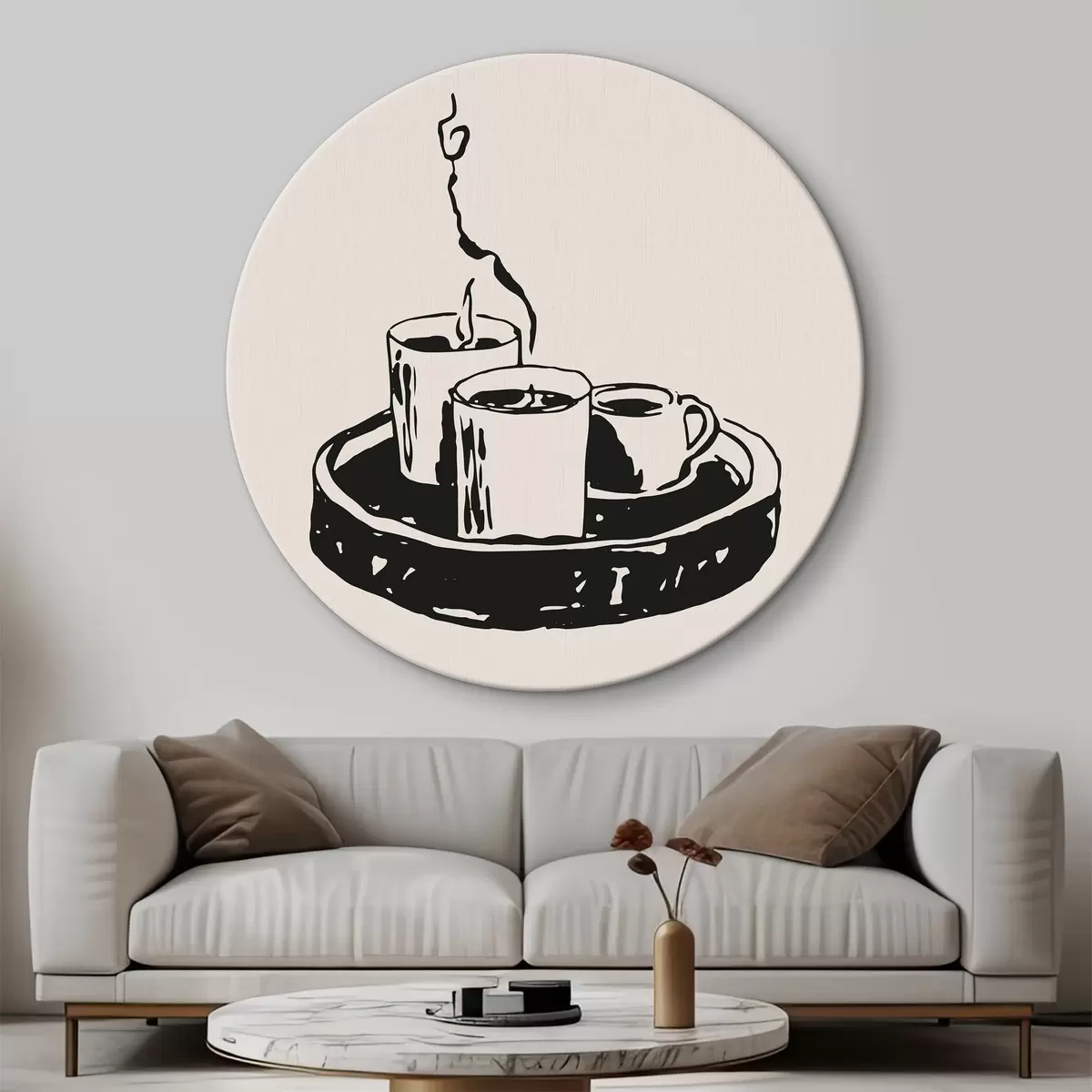 Quadri rotondi Disegno di un vassoio con tazze da caffè r37405
