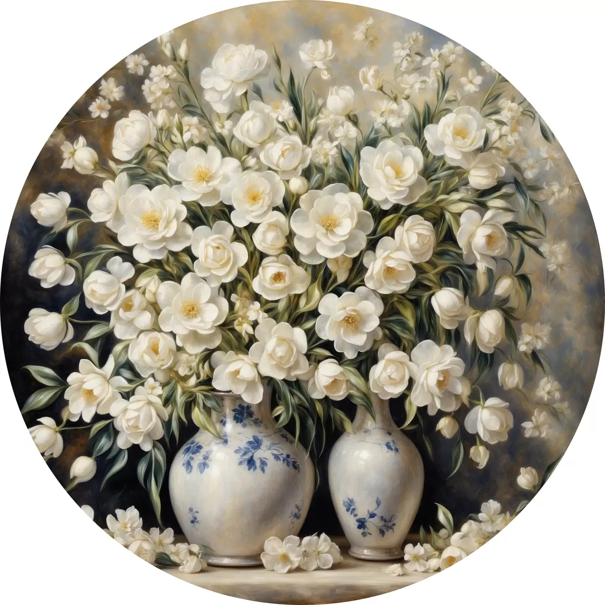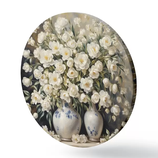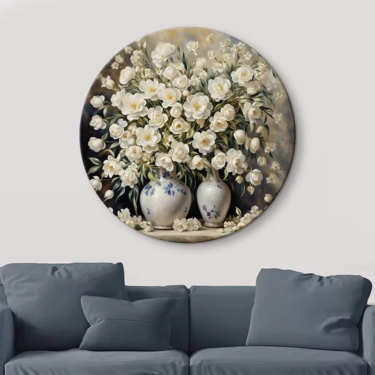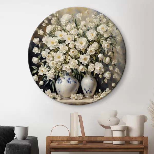 Quadri rotondi Vaso bianco con un grande bouquet di fiori bianchi r37440