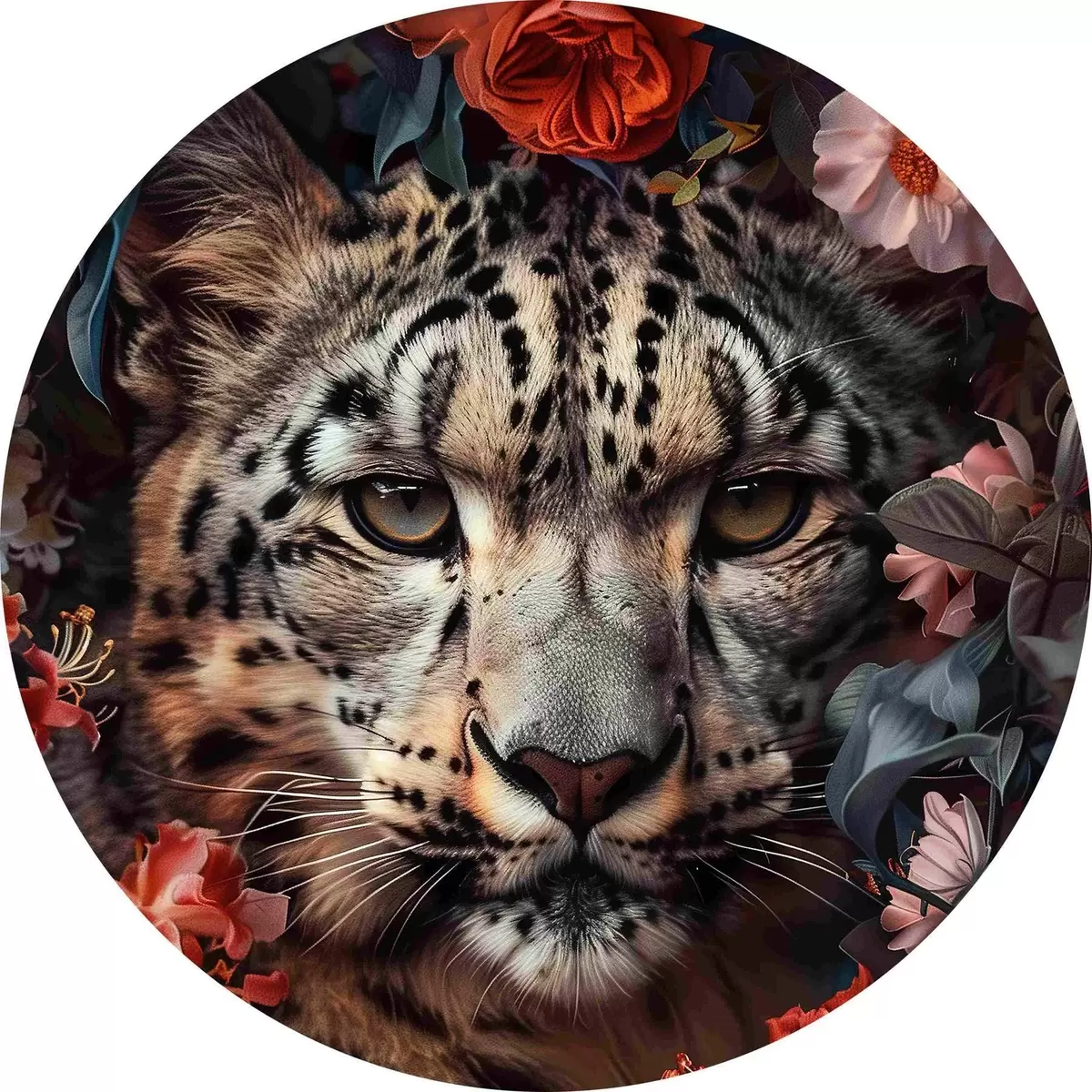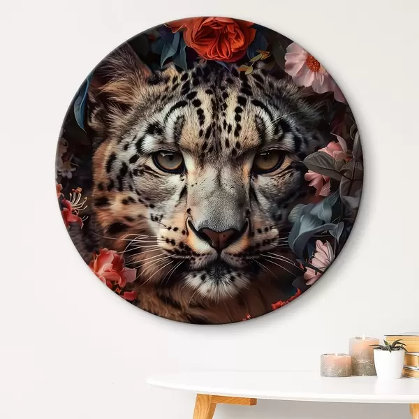 Quadri rotondi Leopardo nel giardino fiorito r37464