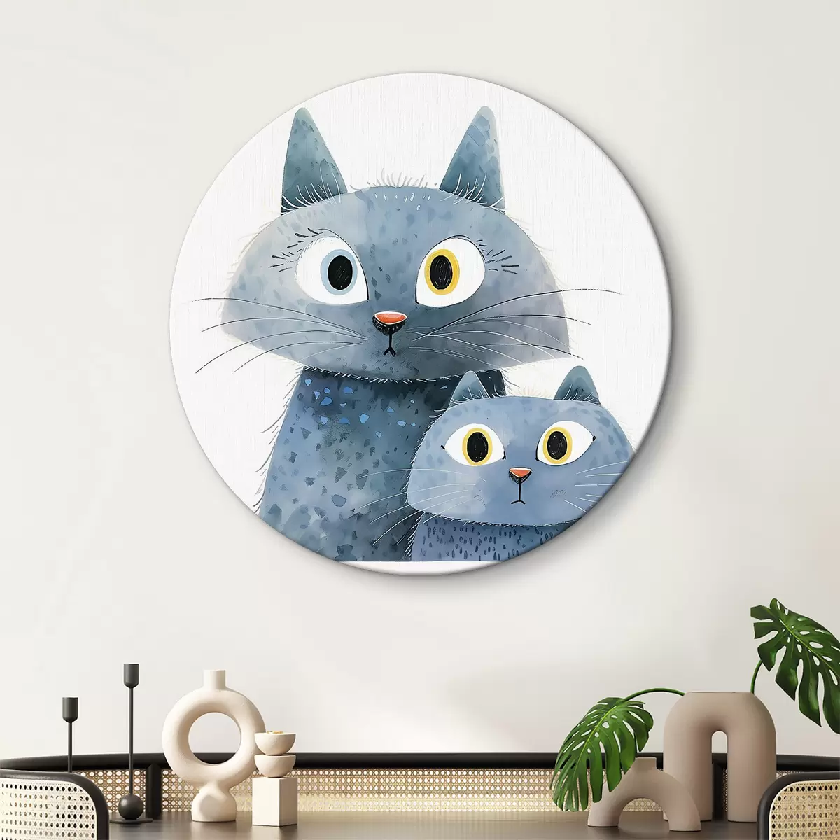 Quadri rotondi Gatto con gattino r37562