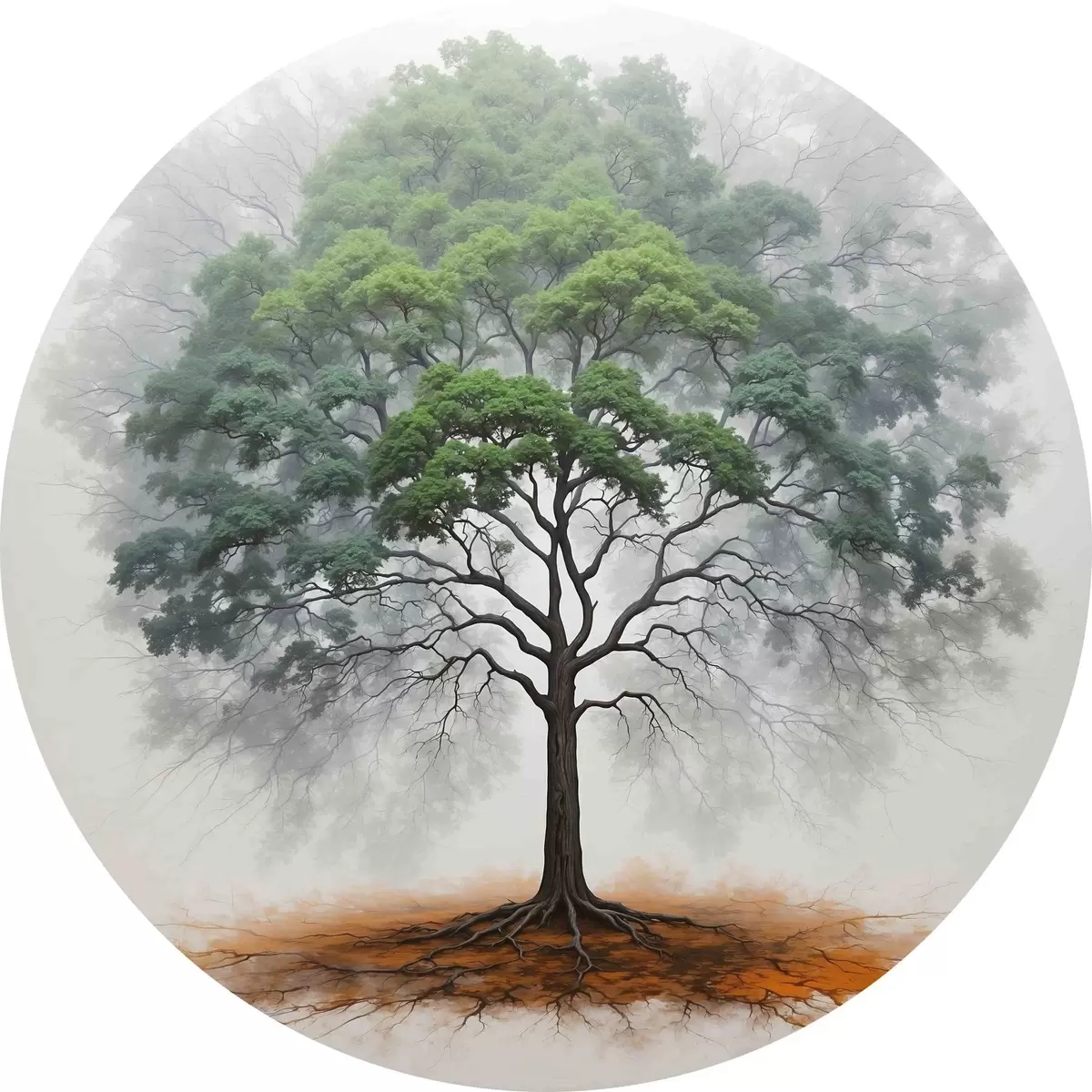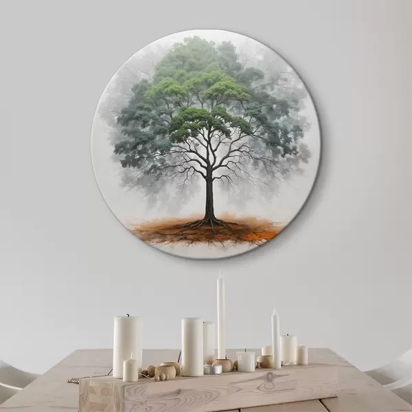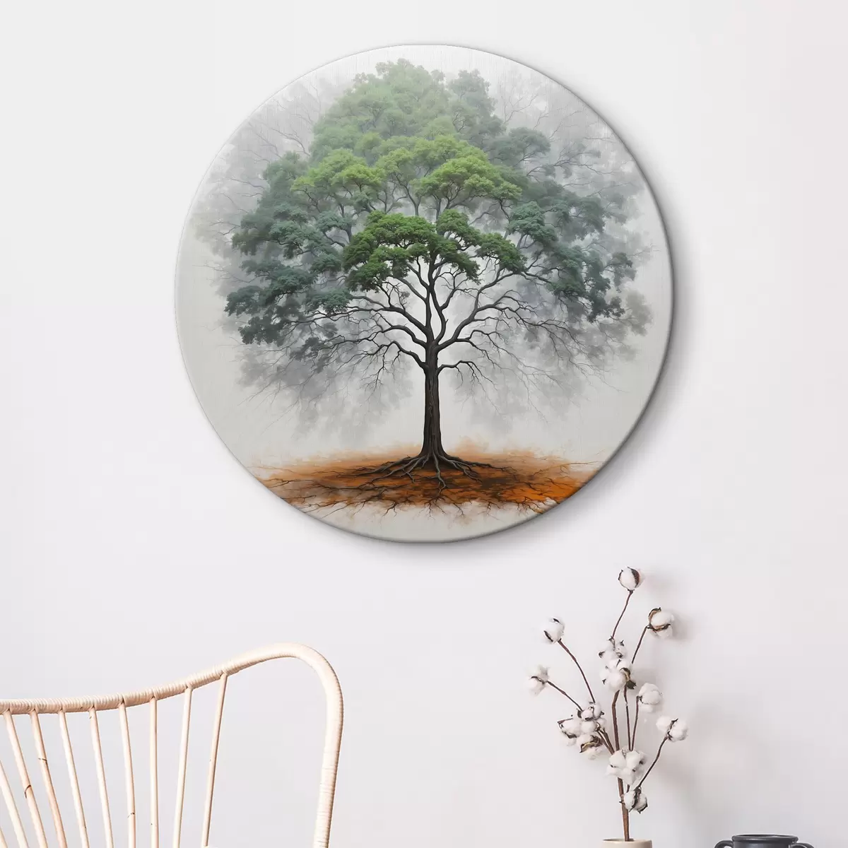 Quadri rotondi Un albero maestoso nella nebbia r37577