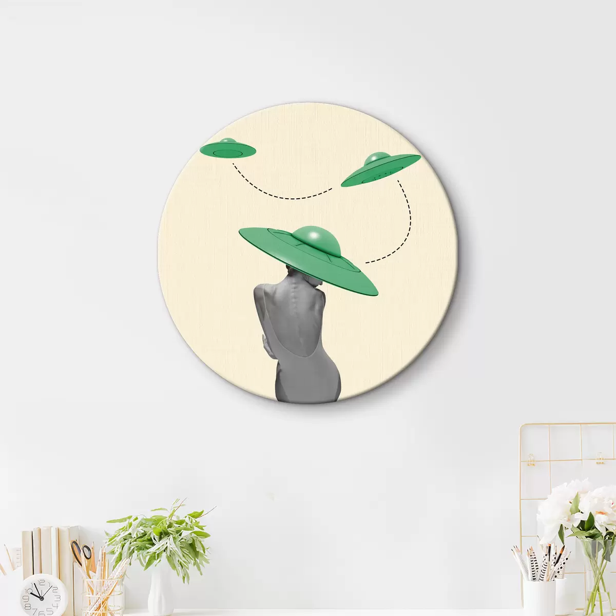 Quadri rotondi Ragazza con cappello verde r37630