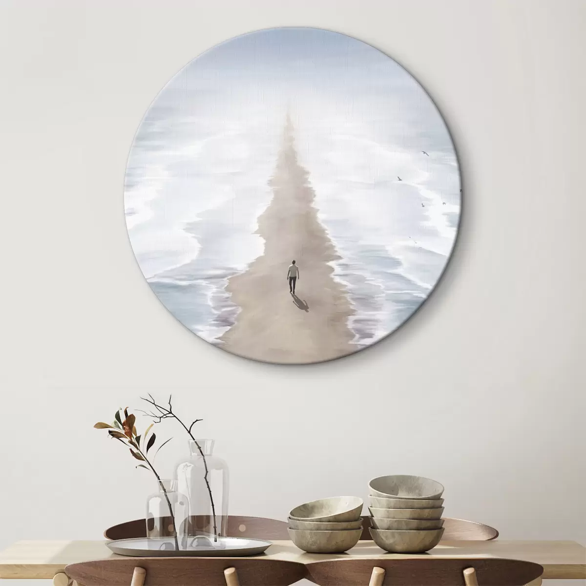 Quadri rotondi Una persona che cammina sulla spiaggia r37783