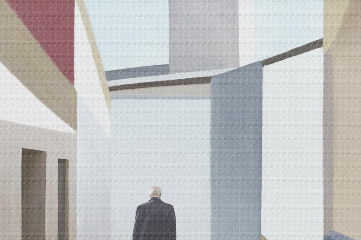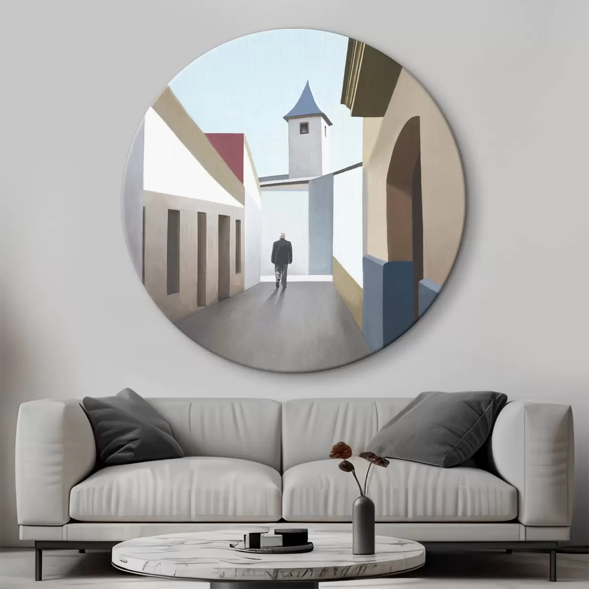 Quadri rotondi Un uomo che cammina in una strada stretta r37784