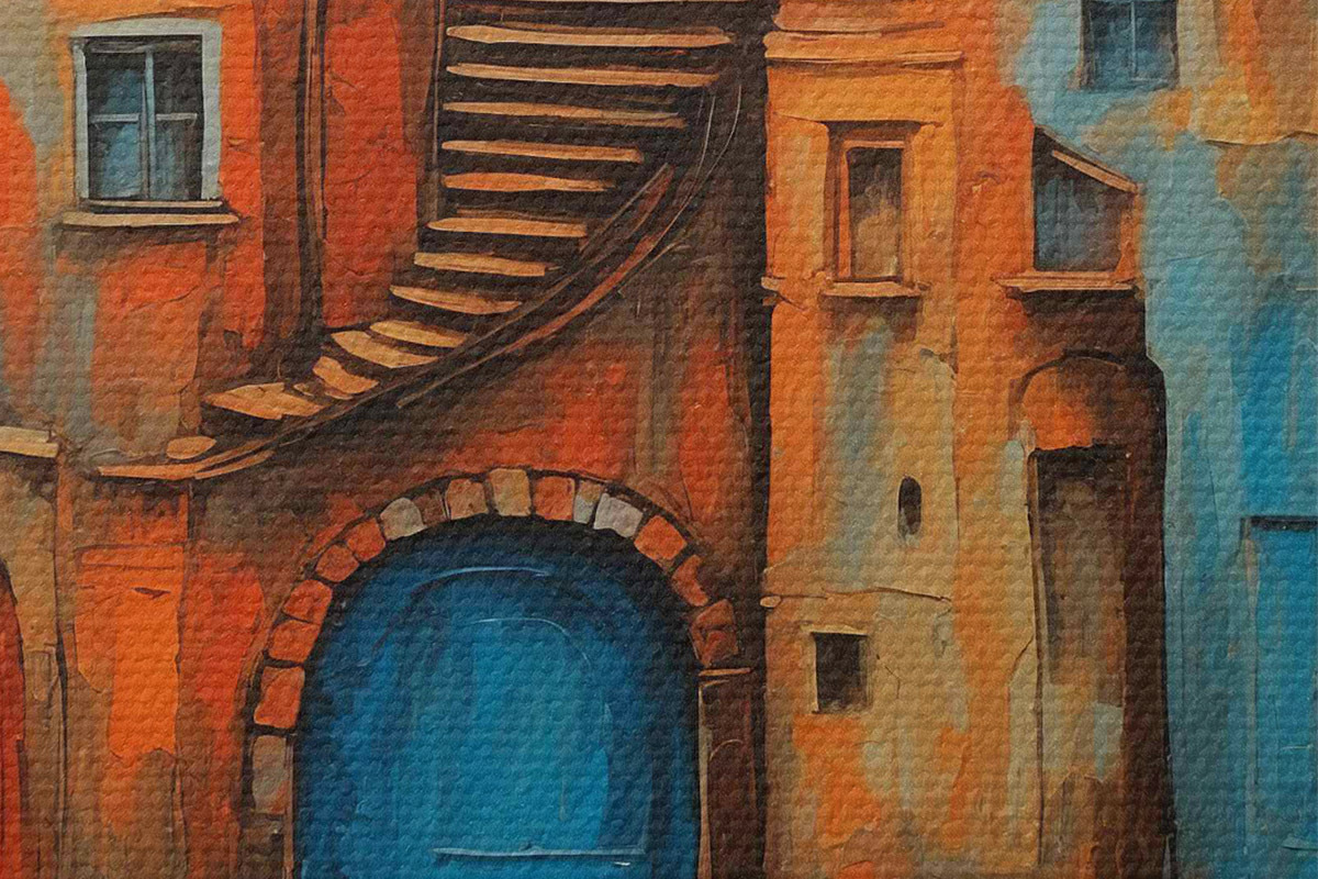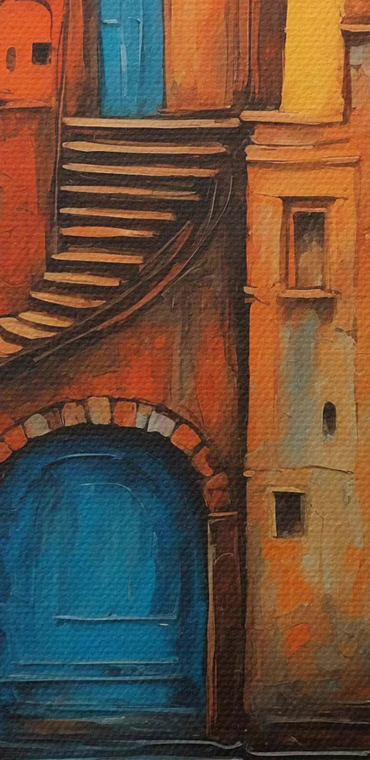 Immagine Immagine di un edificio con una scala e porte blu Nr r37789