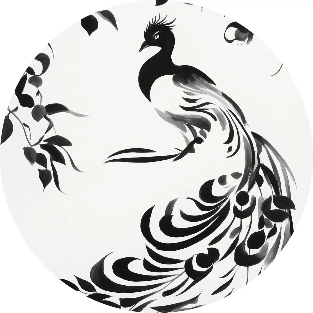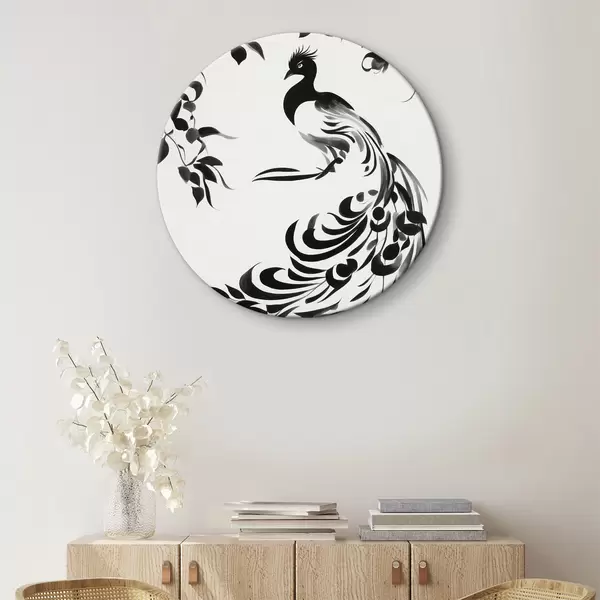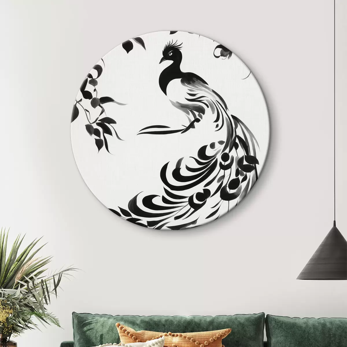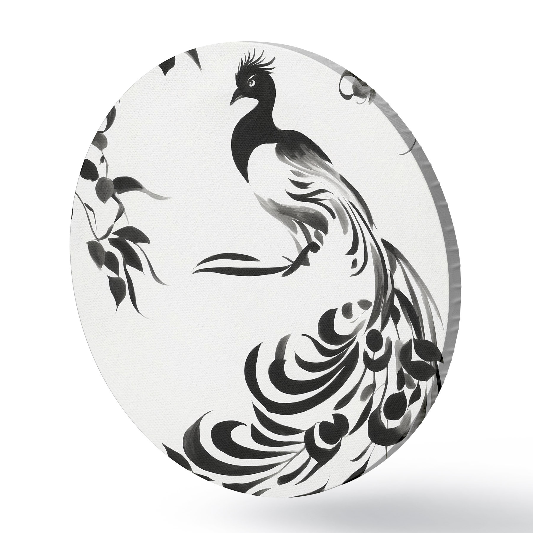 Quadri rotondi Un dipinto in bianco e nero di un uccello r37794