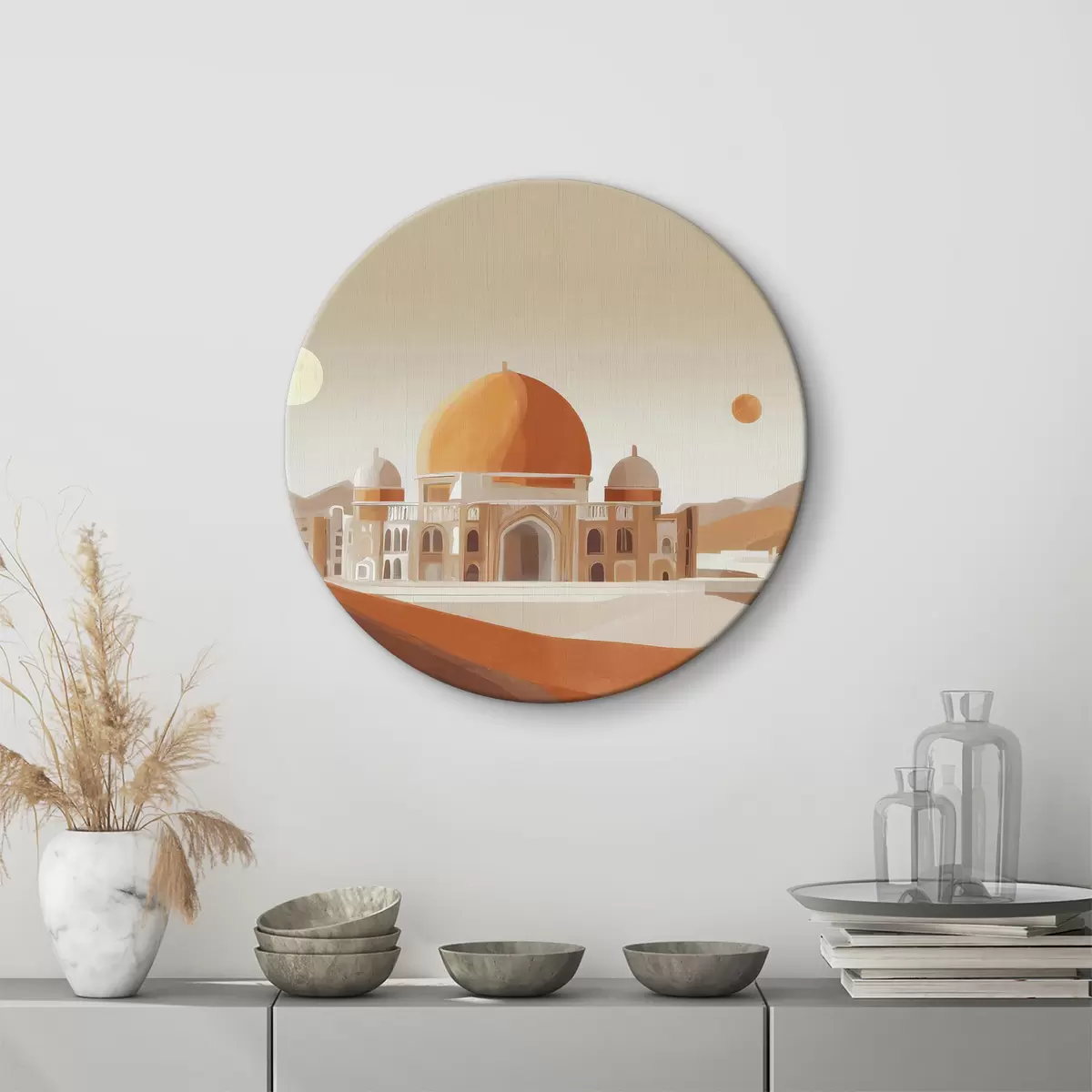 Quadri rotondi Edificio con cupola e paesaggio desertico r37815