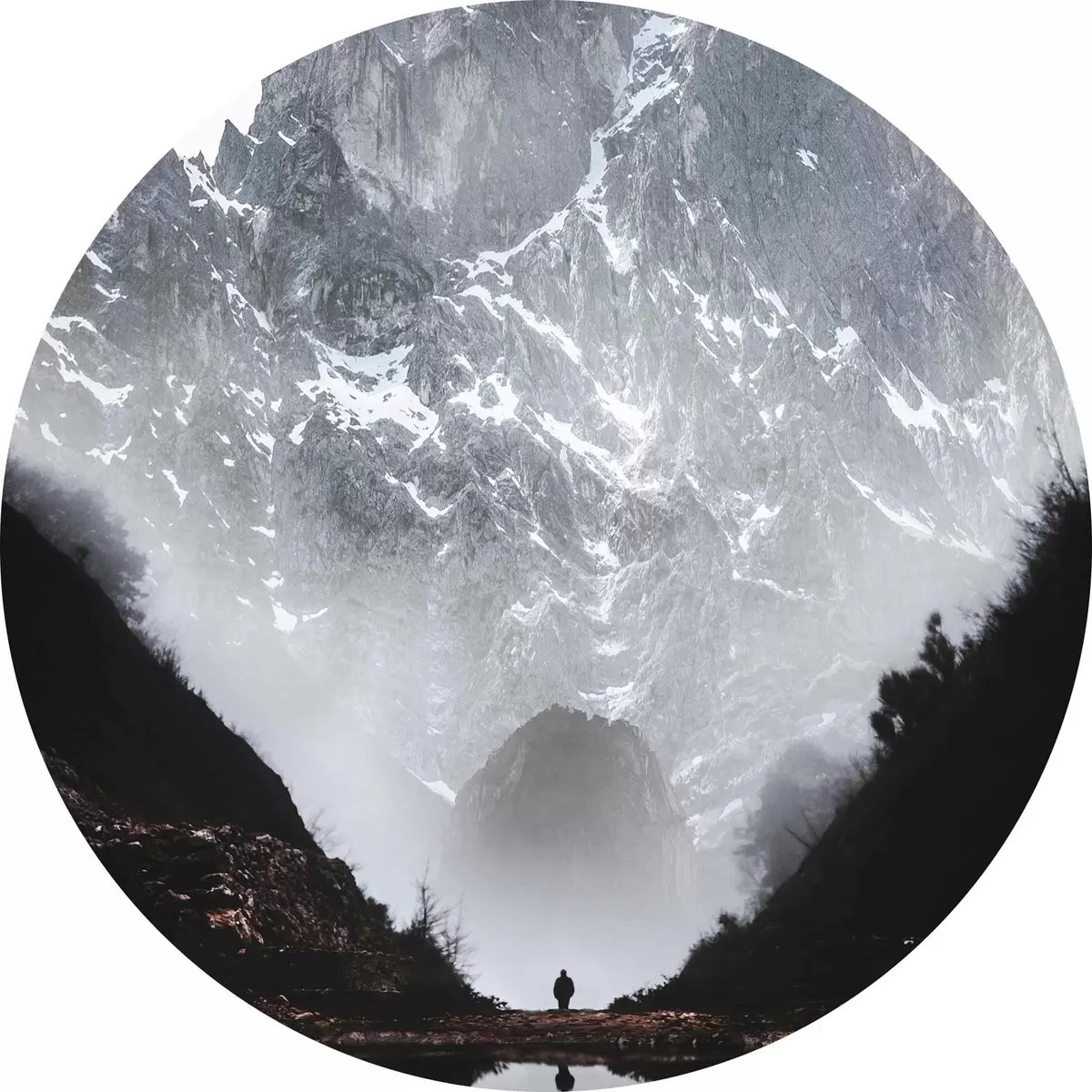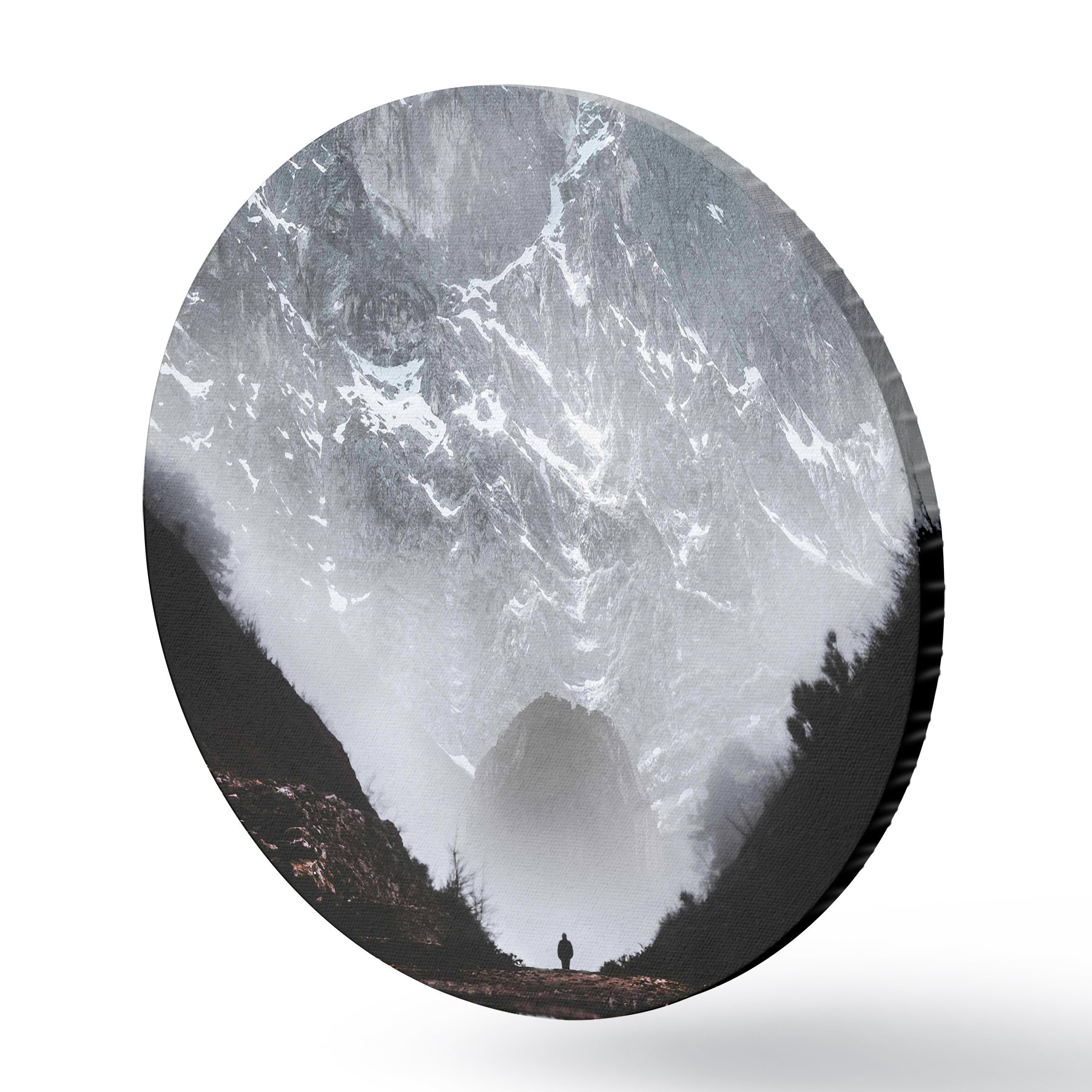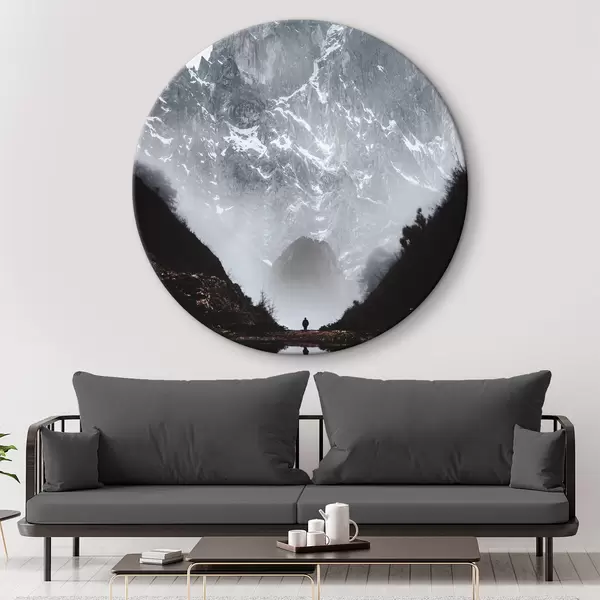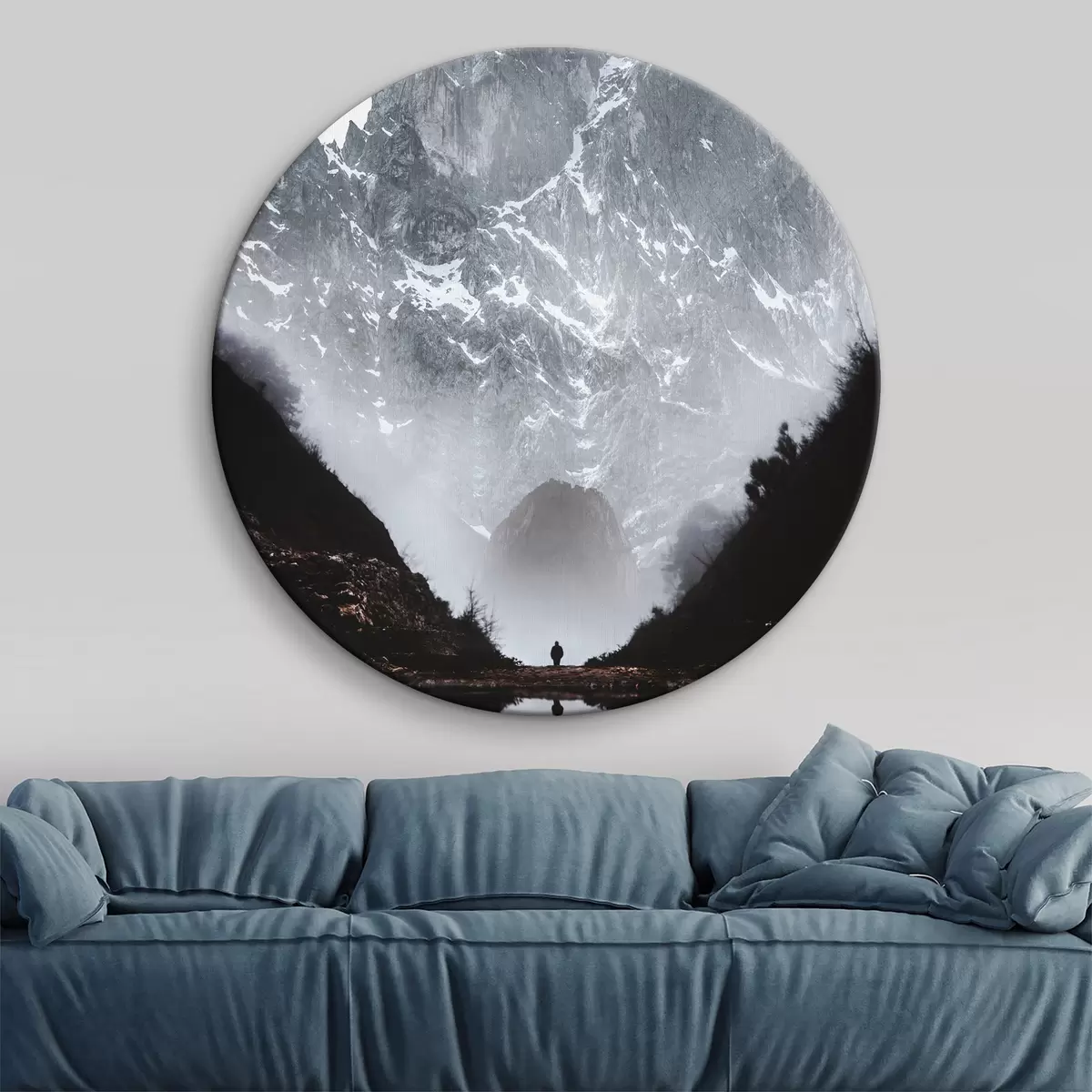Quadri rotondi Le montagne nebbiose si riflettono nell'acqua r37828