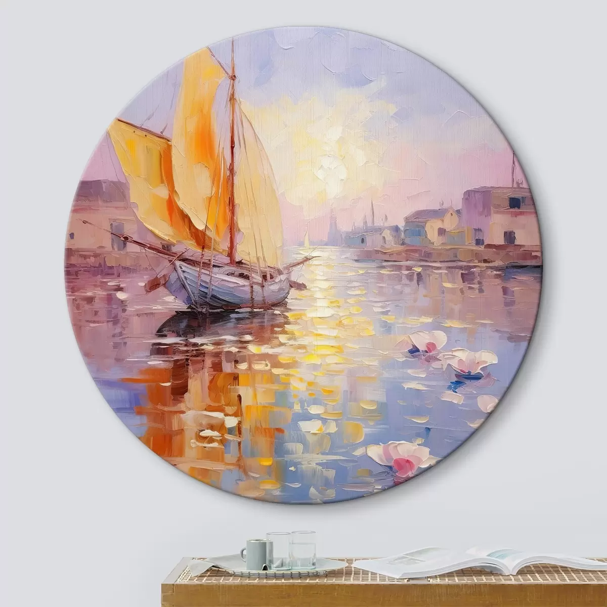Quadri rotondi Navigare verso il tramonto colorato r37882
