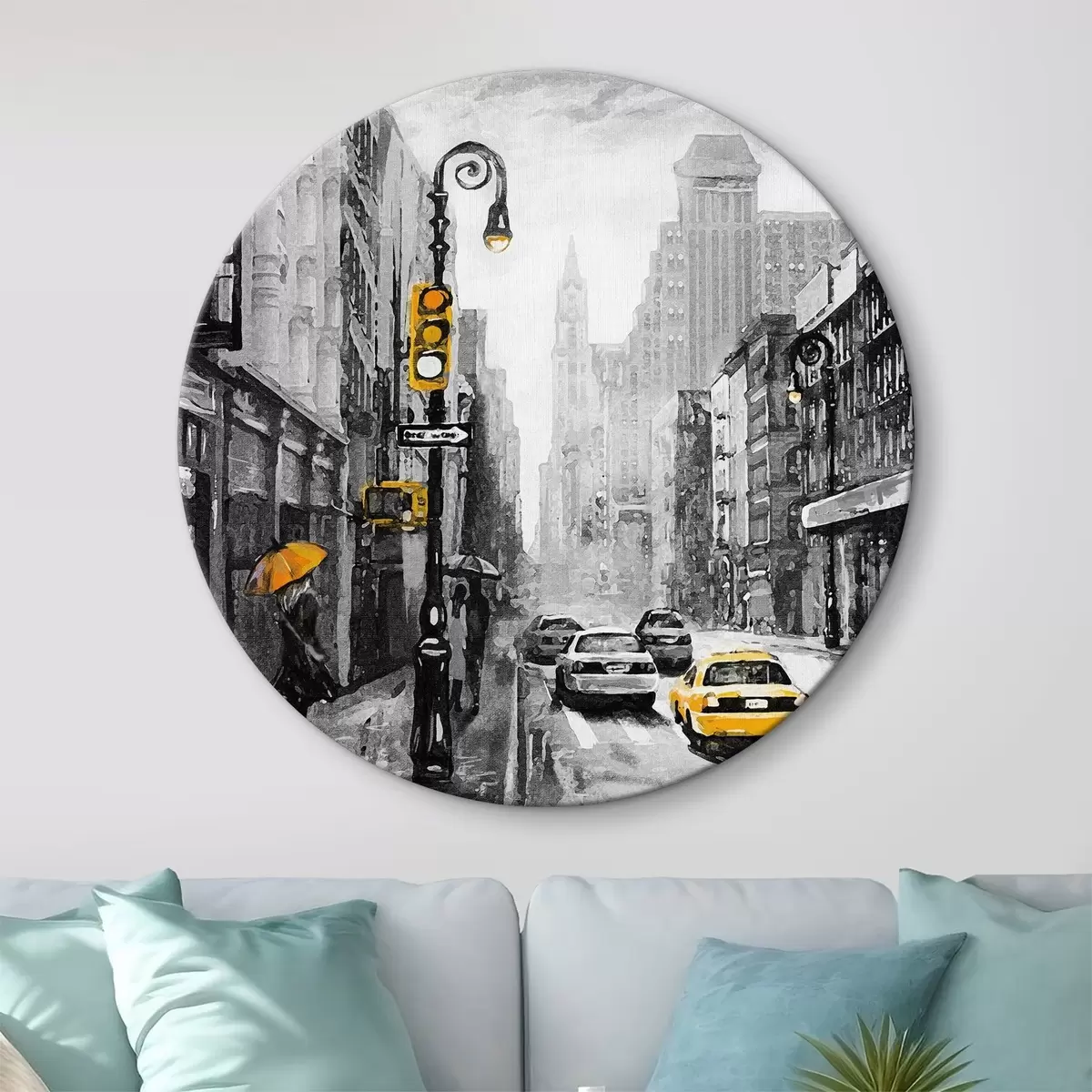 Quadri rotondi Giornata di pioggia per le strade della città r37892v1