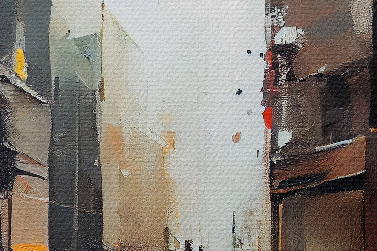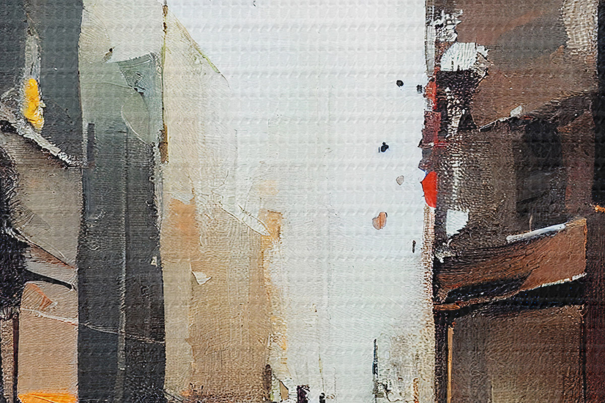 La fine trama dei fili di questa tela ricorda la superficie delle tele degli artisti professionisti.