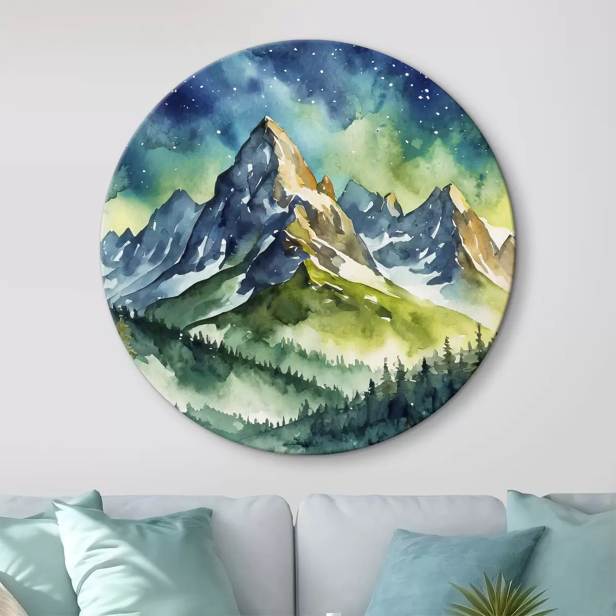Quadri rotondi Montagne maestose sotto il cielo stellato r37944