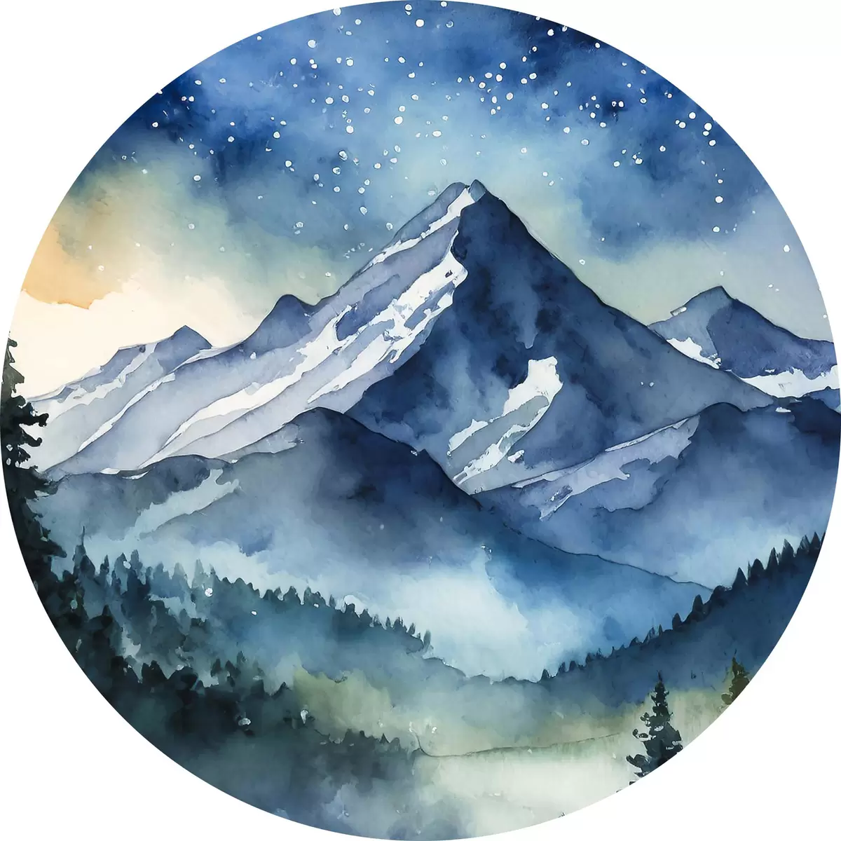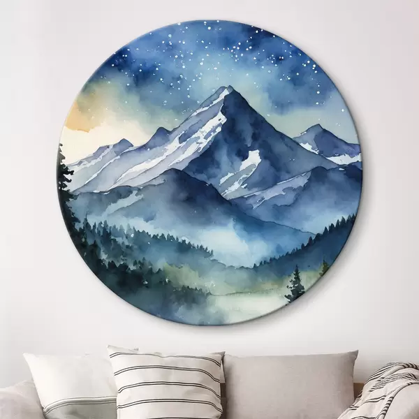 Quadri rotondi Montagne maestose sotto il cielo stellato r37945