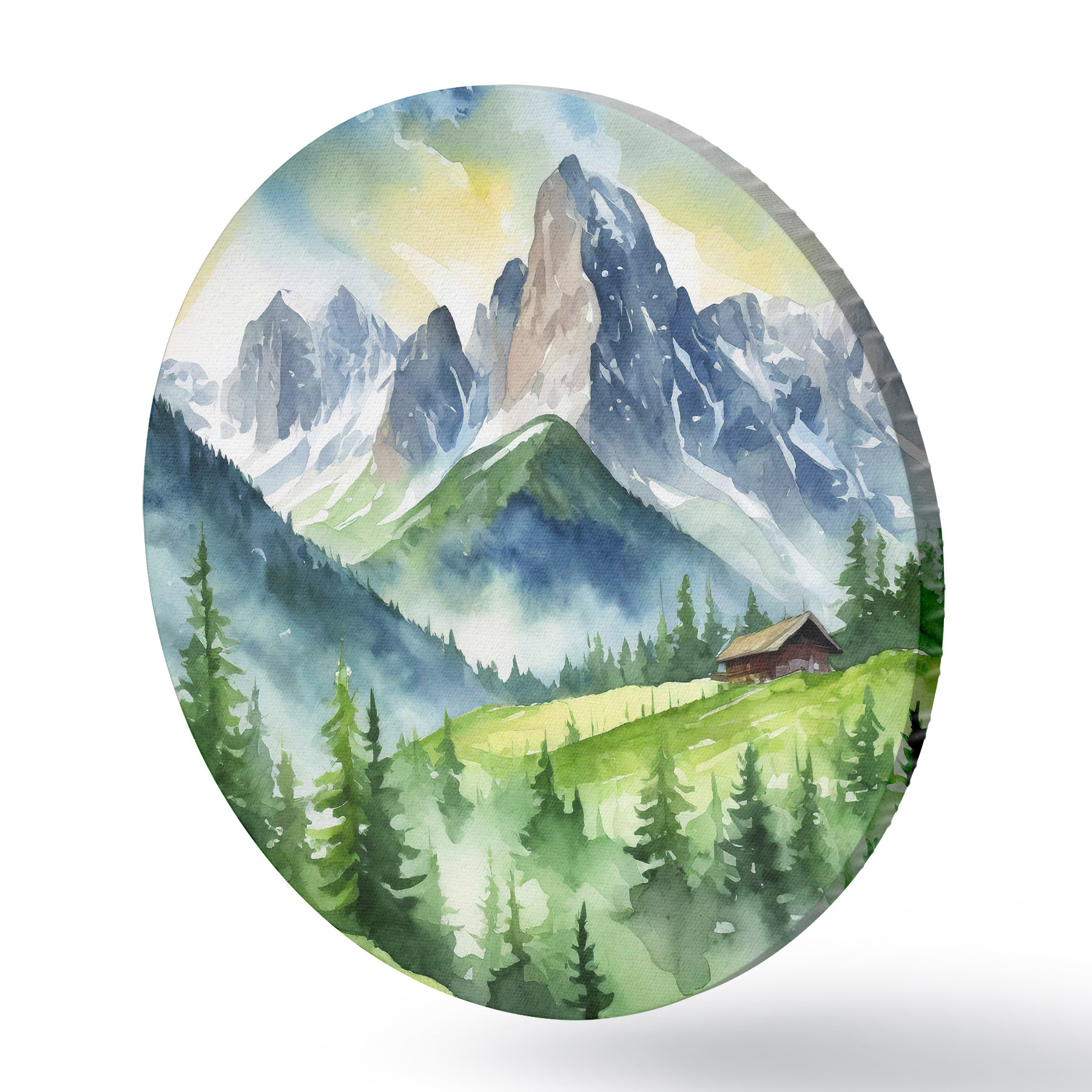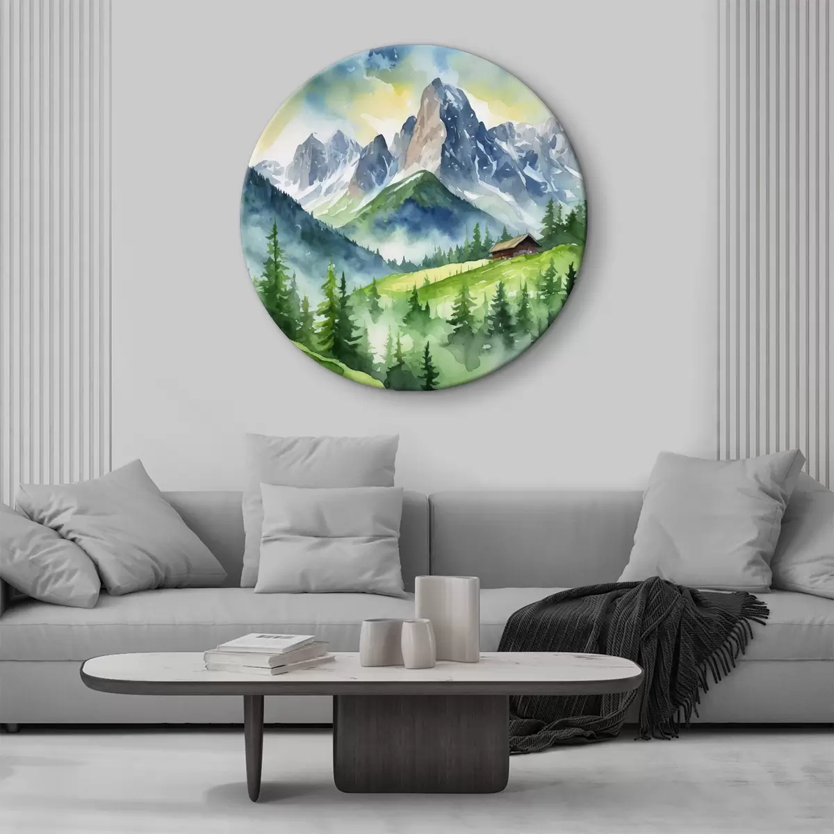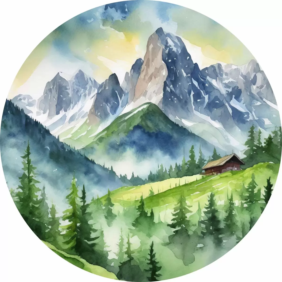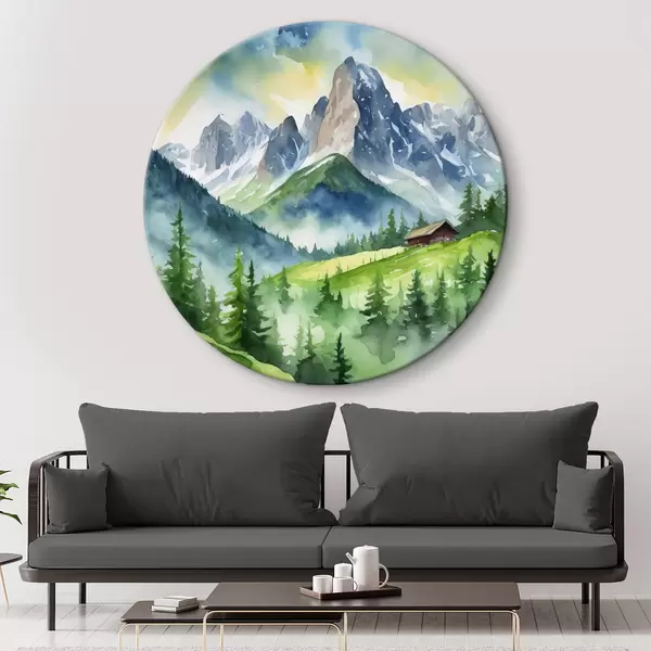 Quadri rotondi Montagne maestose sotto un cielo morbido r37959