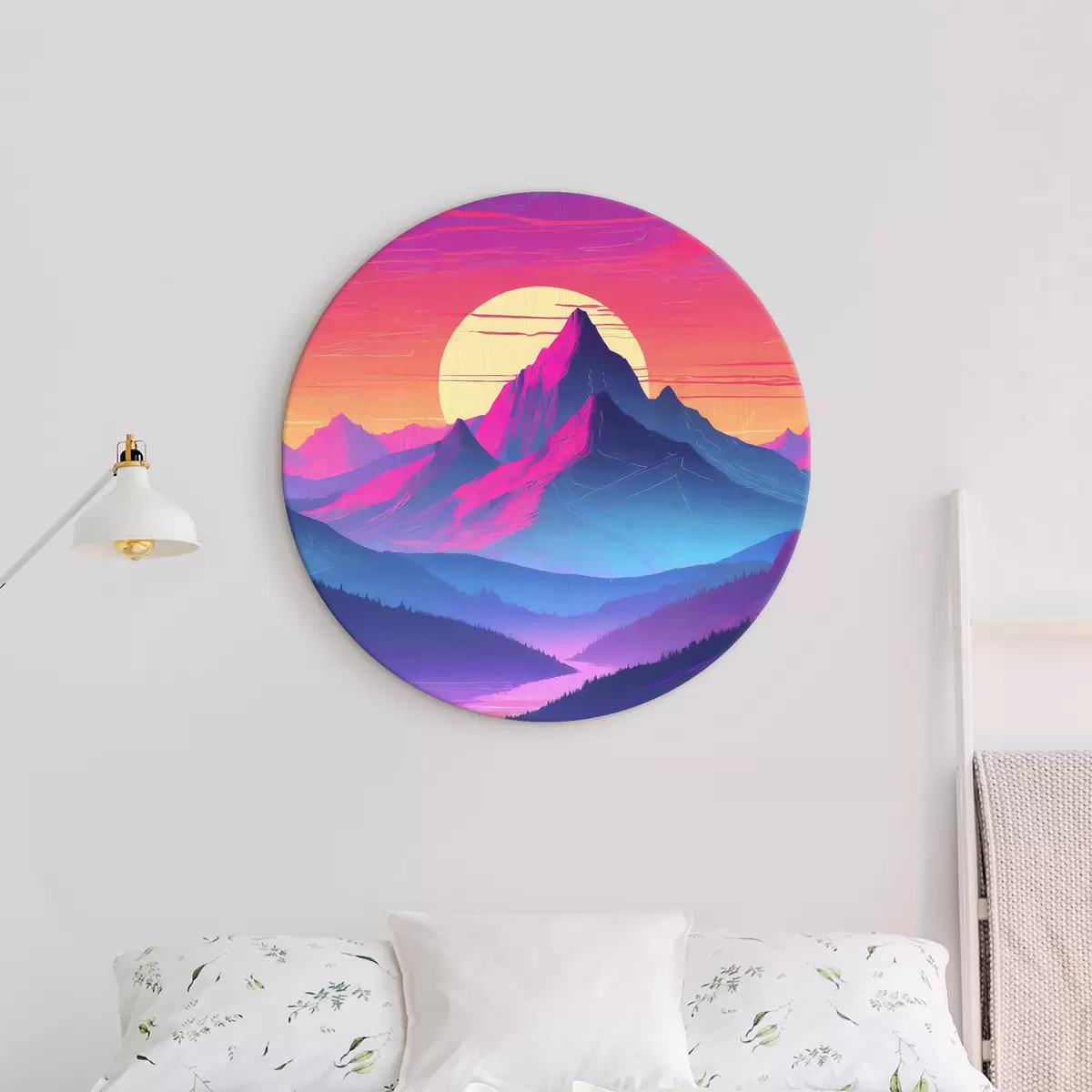 Quadri rotondi Montagne tranquille sotto un cielo colorato r38003