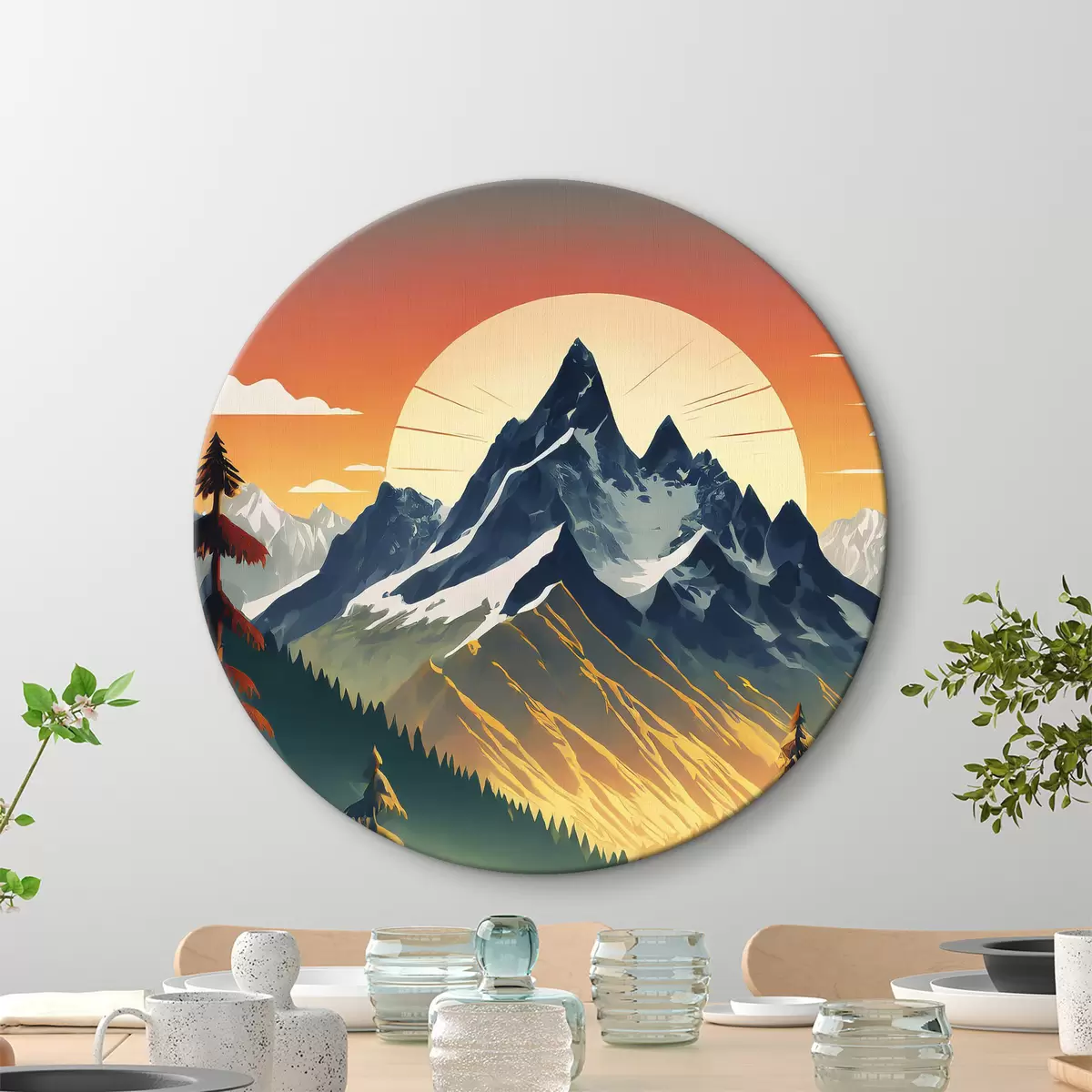 Quadri rotondi Montagne tranquille sotto un cielo colorato r38004