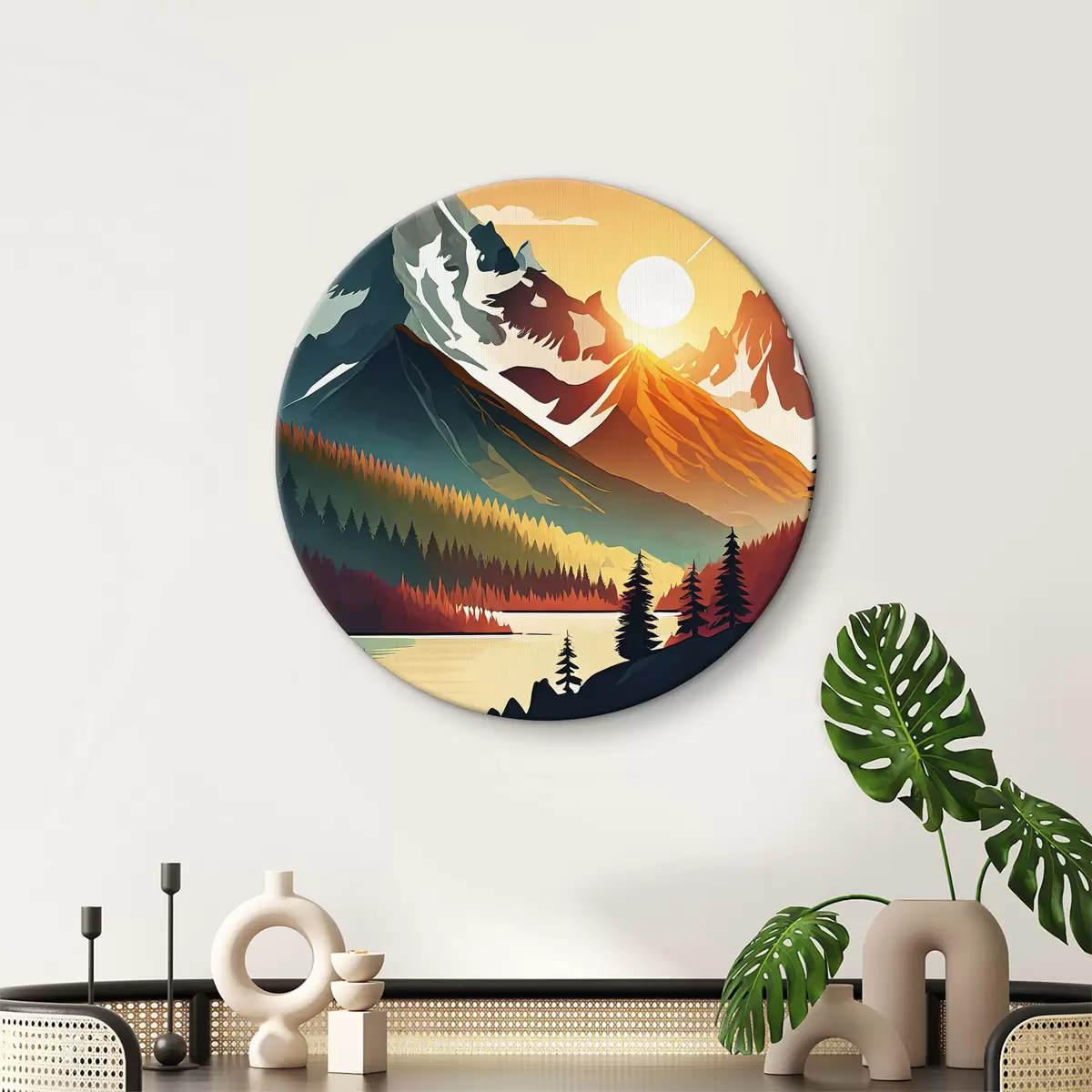 Quadri rotondi Montagne maestose sotto un cielo luminoso r38006