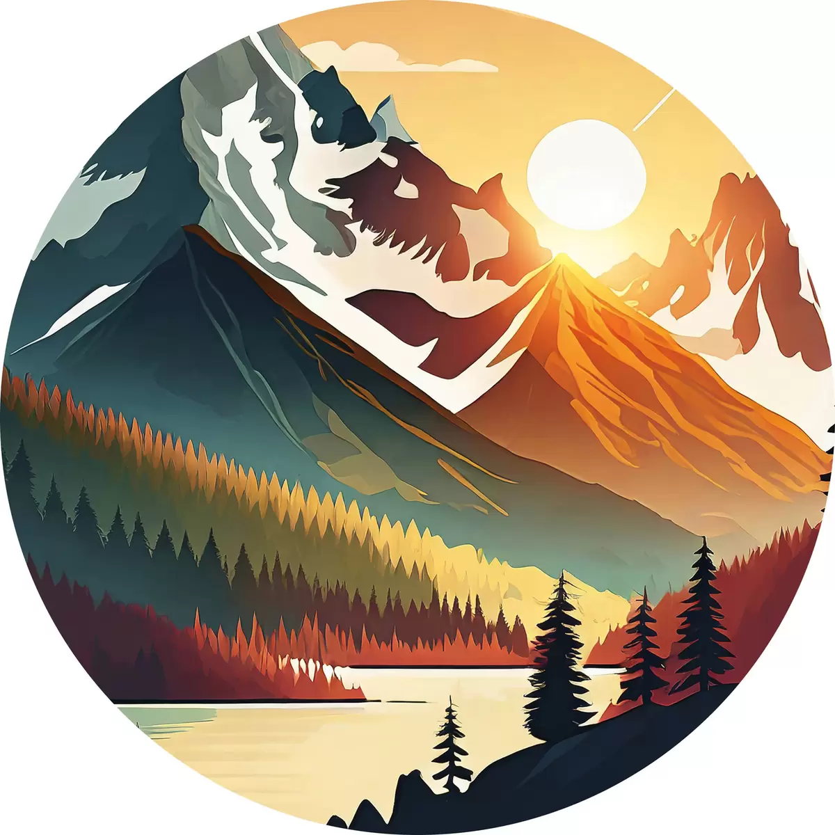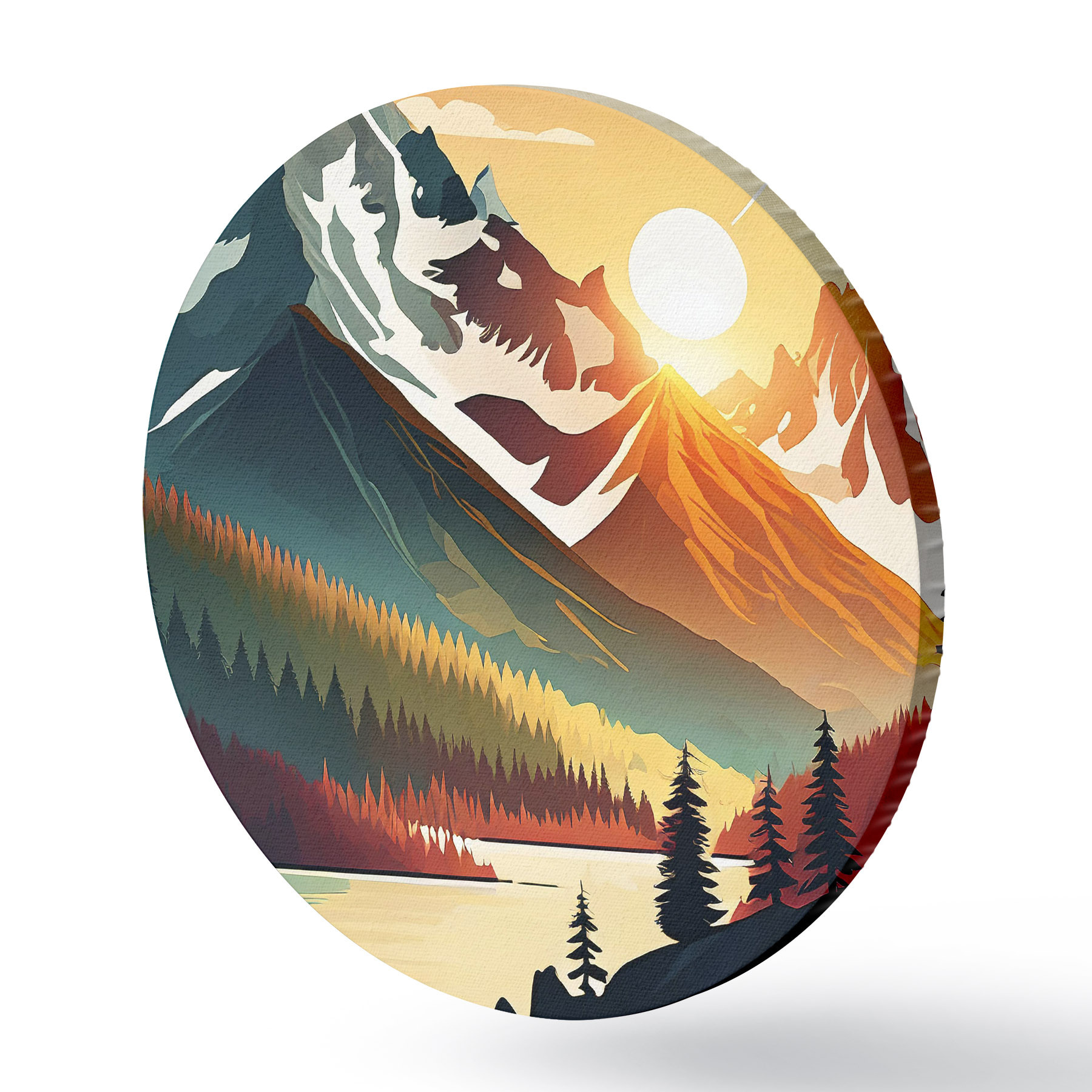 Quadri rotondi Montagne maestose sotto un cielo luminoso r38006