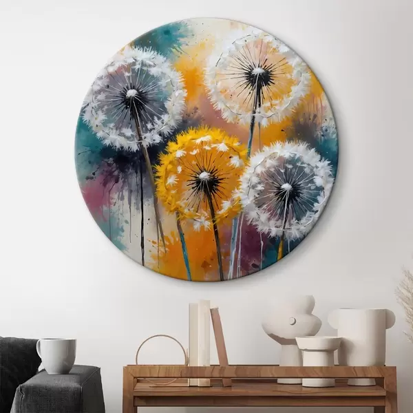 Quadri rotondi Denti di leone su uno sfondo colorato r38060