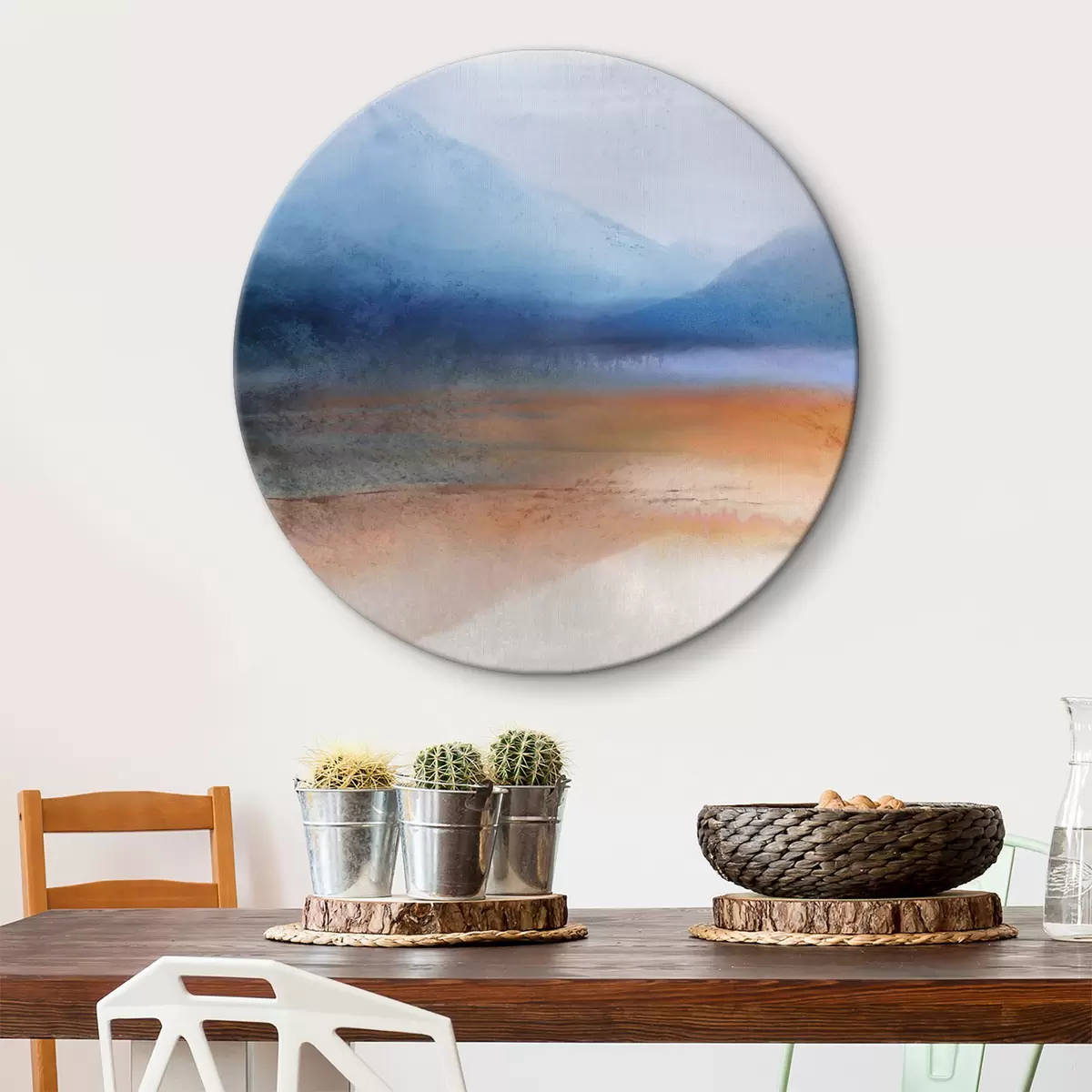 Quadri rotondi Montagne e sabbia acquerellate r38067