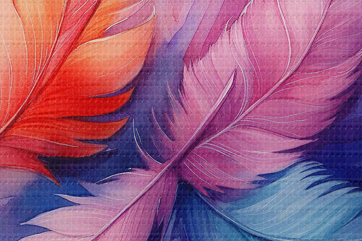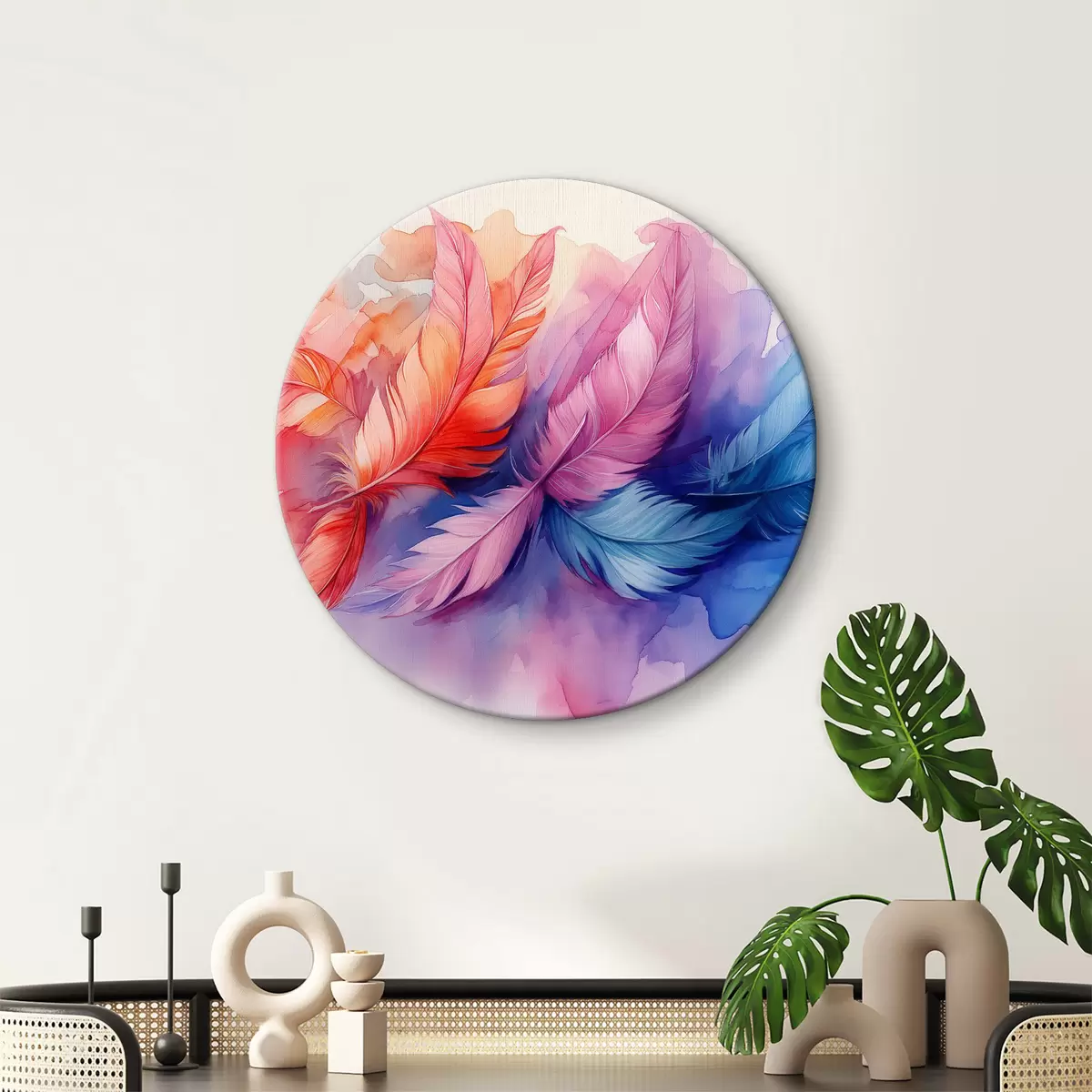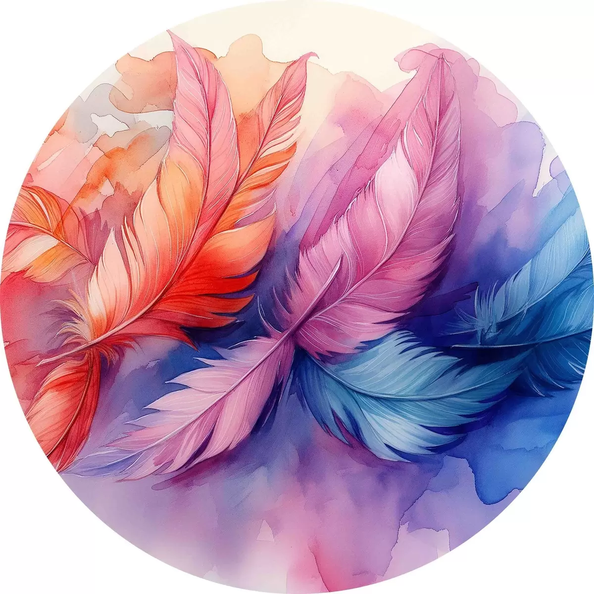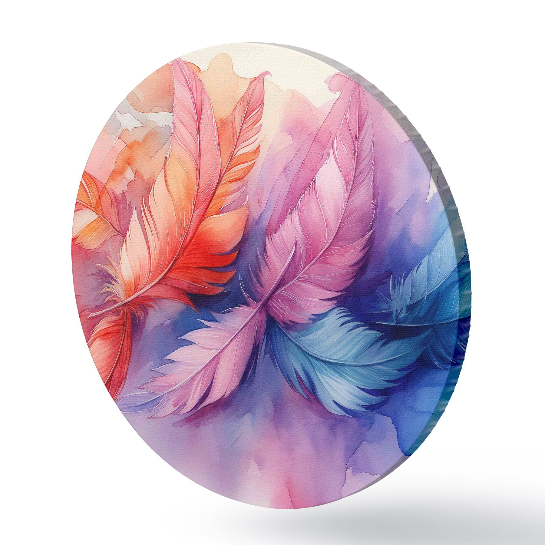 Quadri rotondi Piume colorate su sfondo bianco r38093