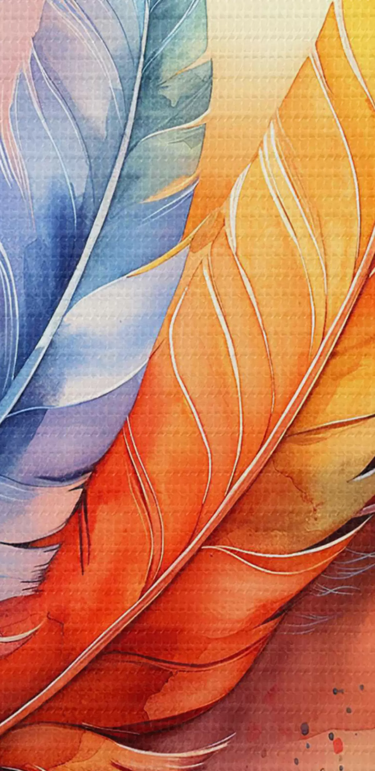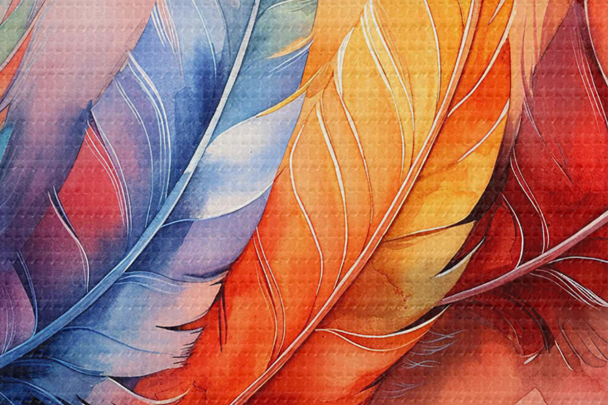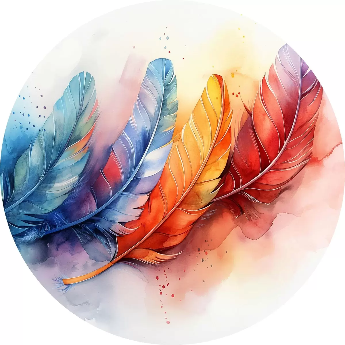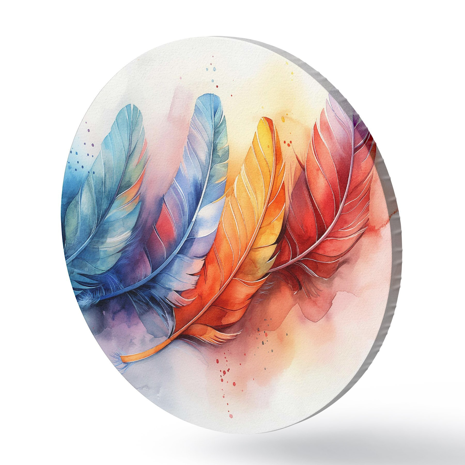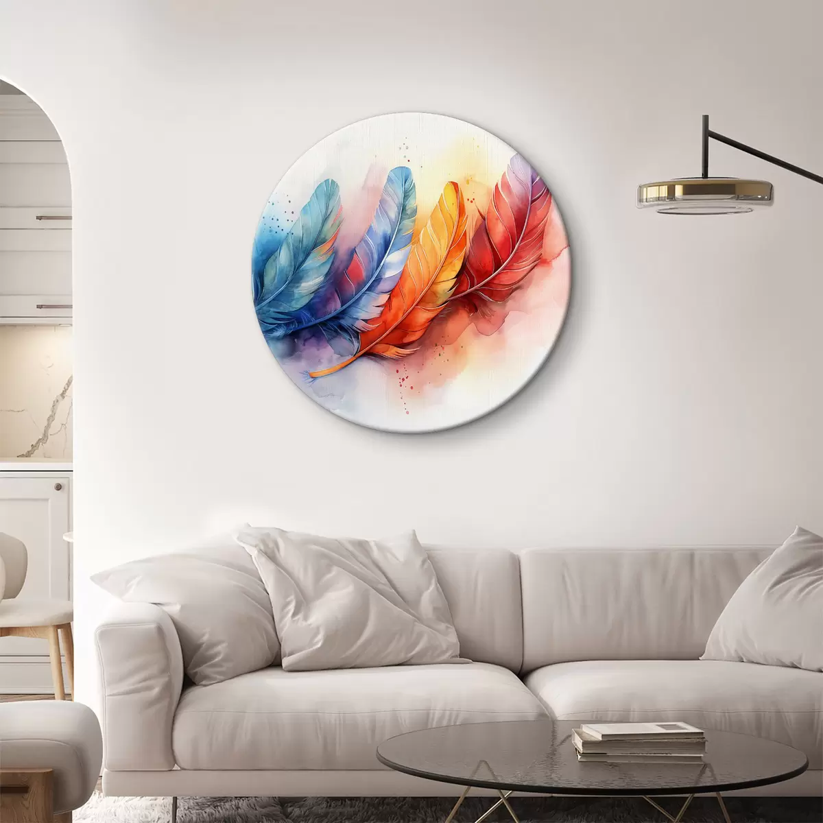 Quadri rotondi Piume colorate su sfondo bianco r38094