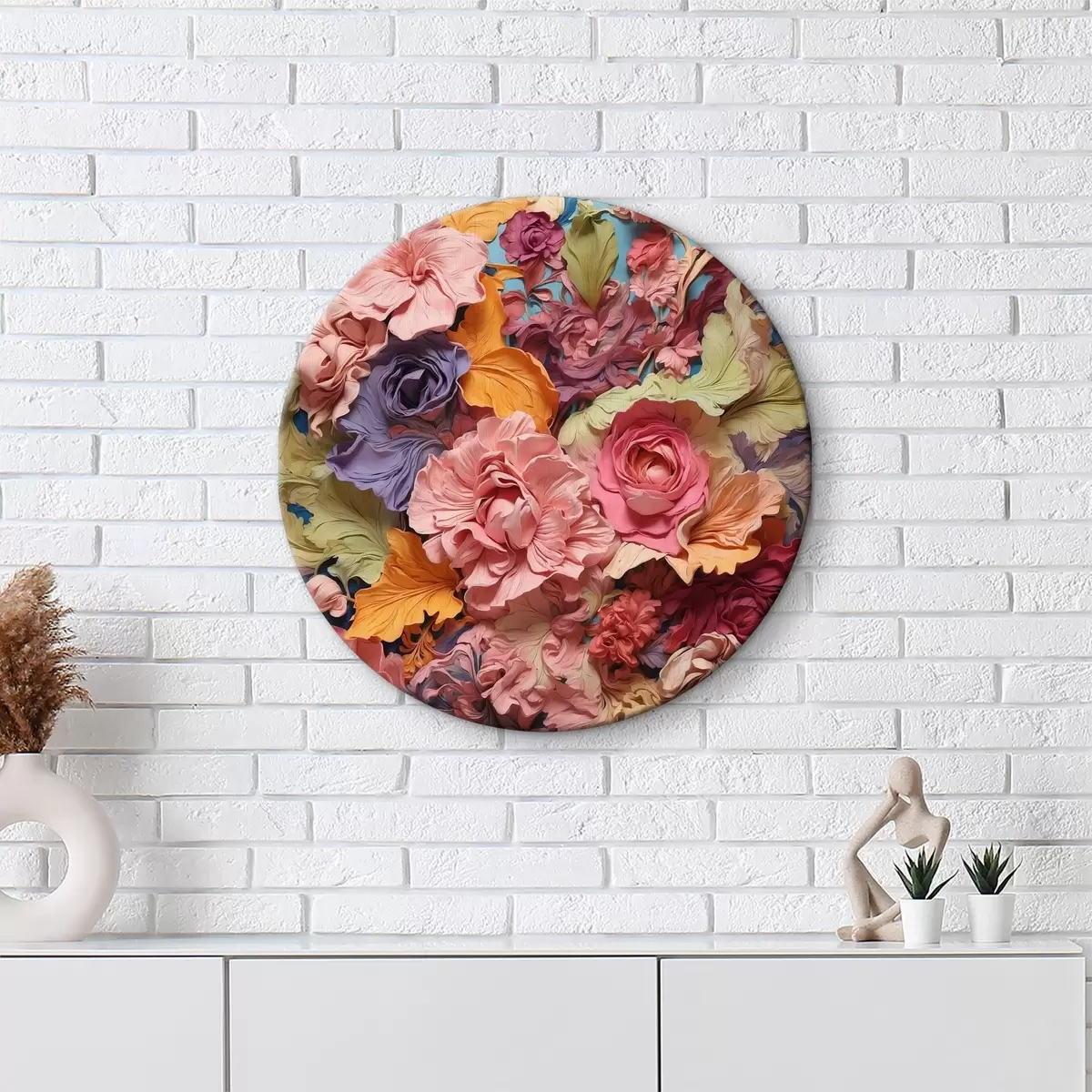 Quadri rotondi Gruppo di fiori su una superficie blu r38116