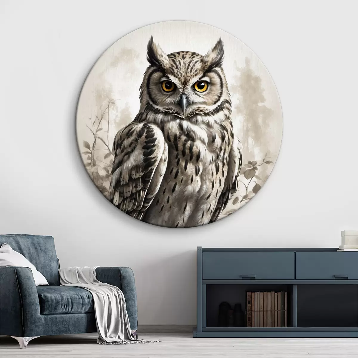 Quadri rotondi Gufo su sfondo bianco e nero r38118