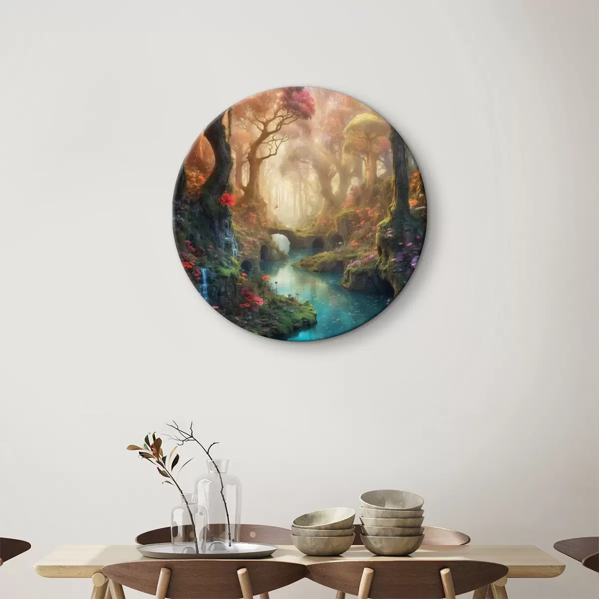 Quadri rotondi Un fiume che scorre nella foresta r38121