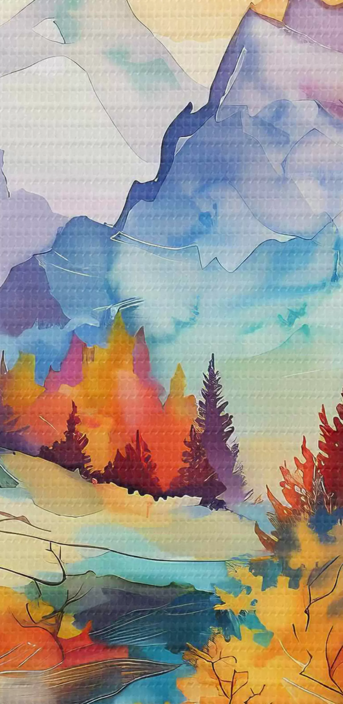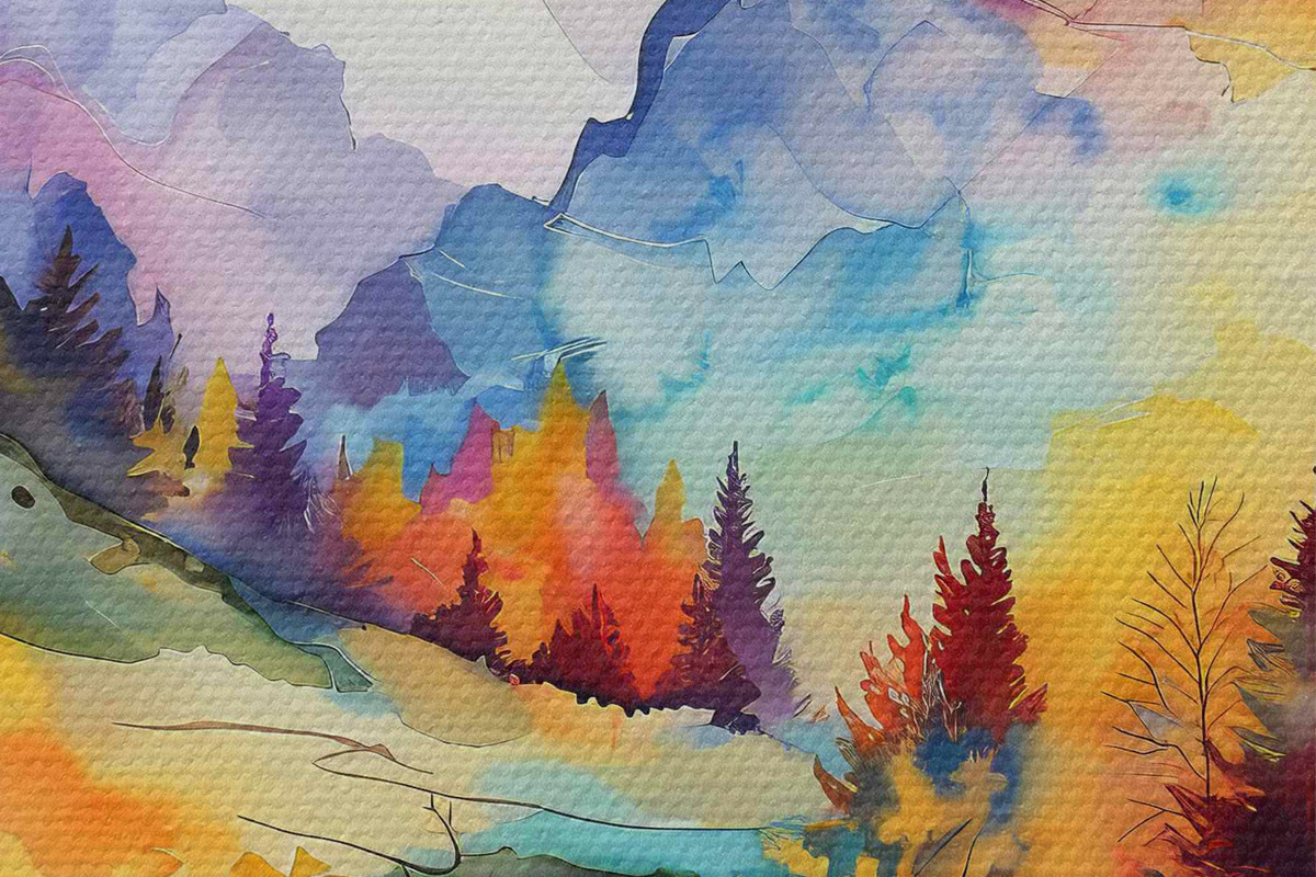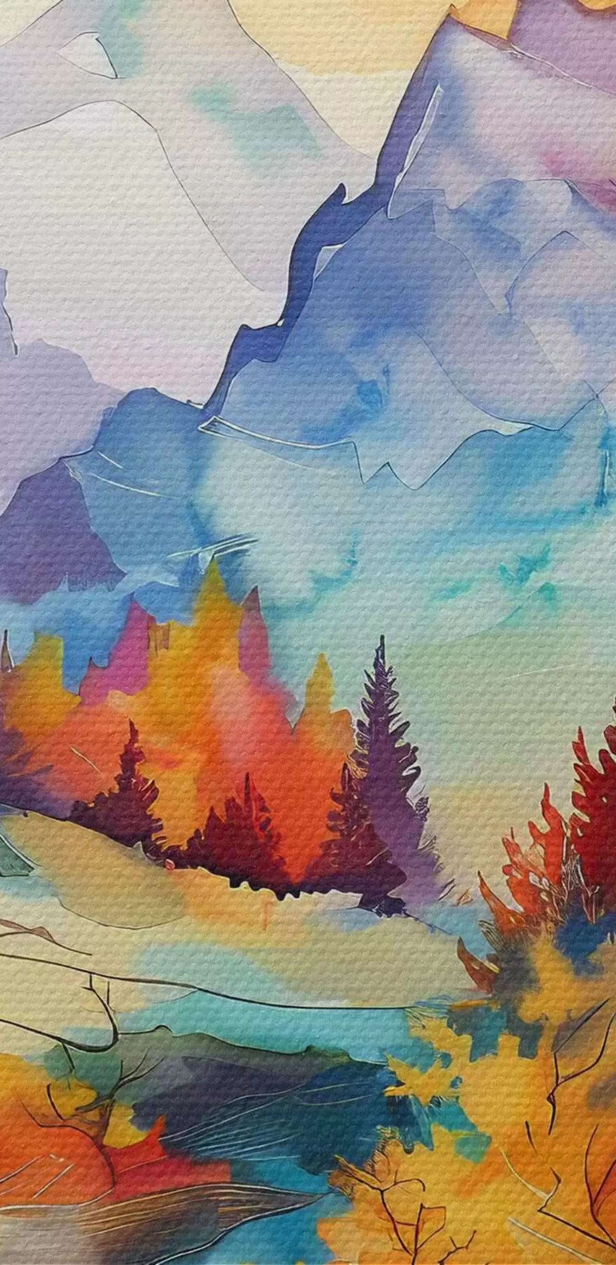 Immagine Paesaggio montano colorato con alberi e fiume Nr r38145