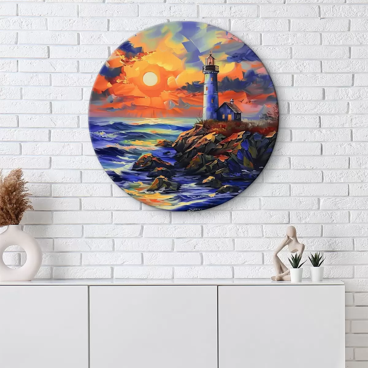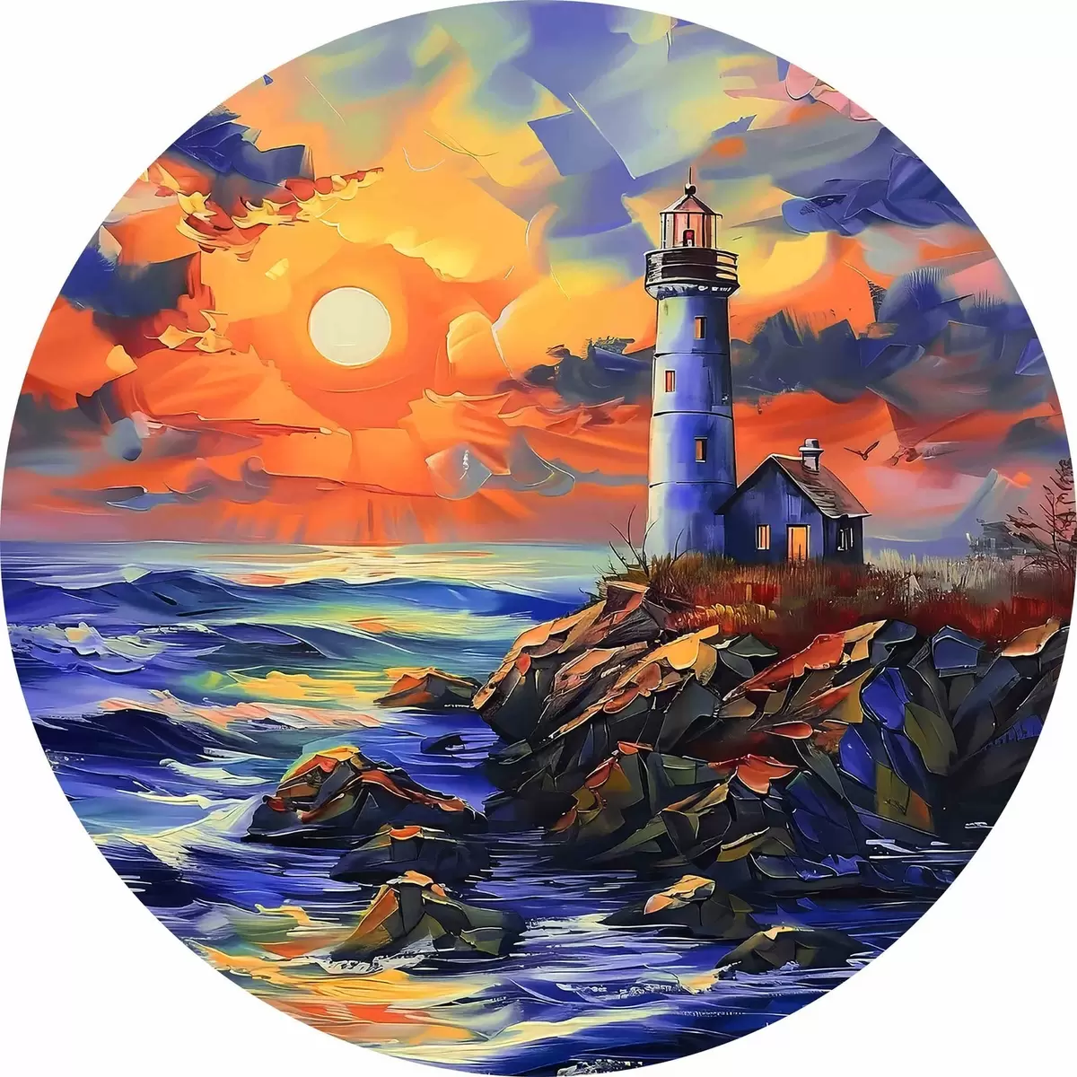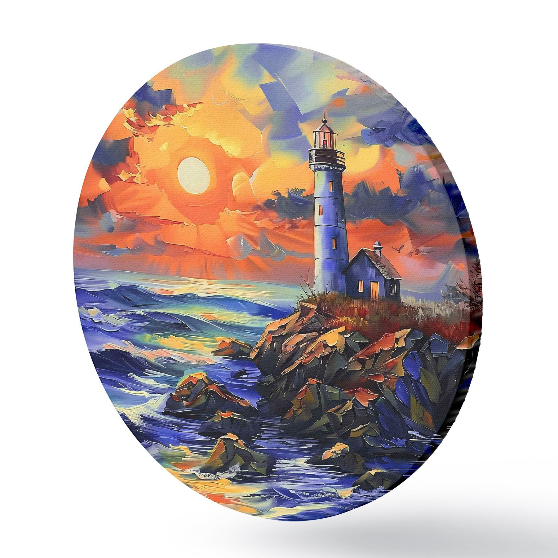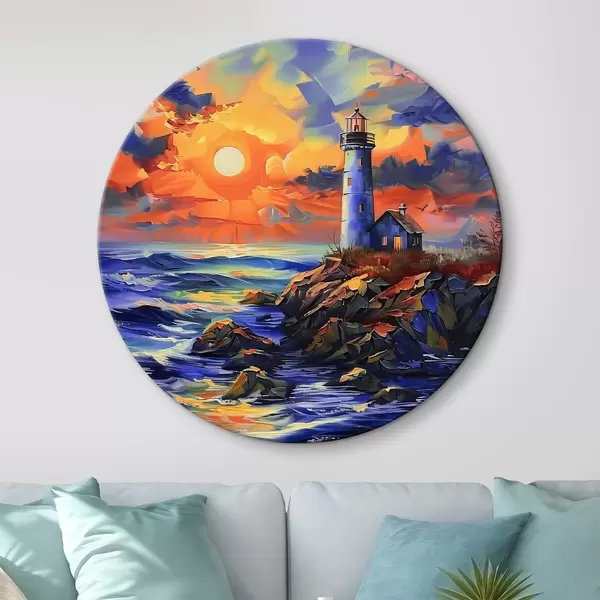 Quadri rotondi Faro al tramonto sulla riva del mare r38150