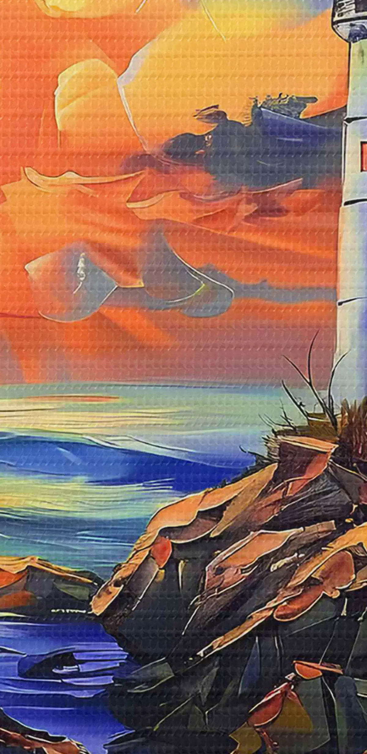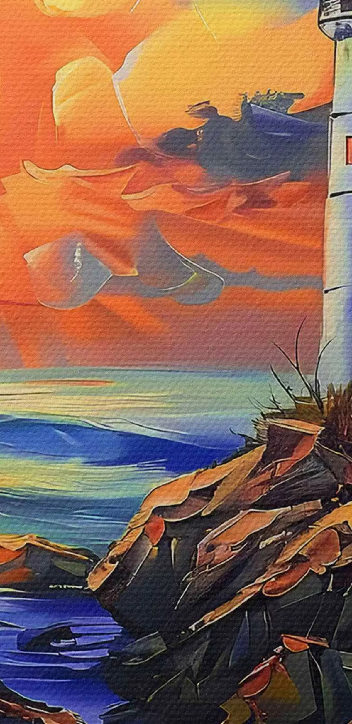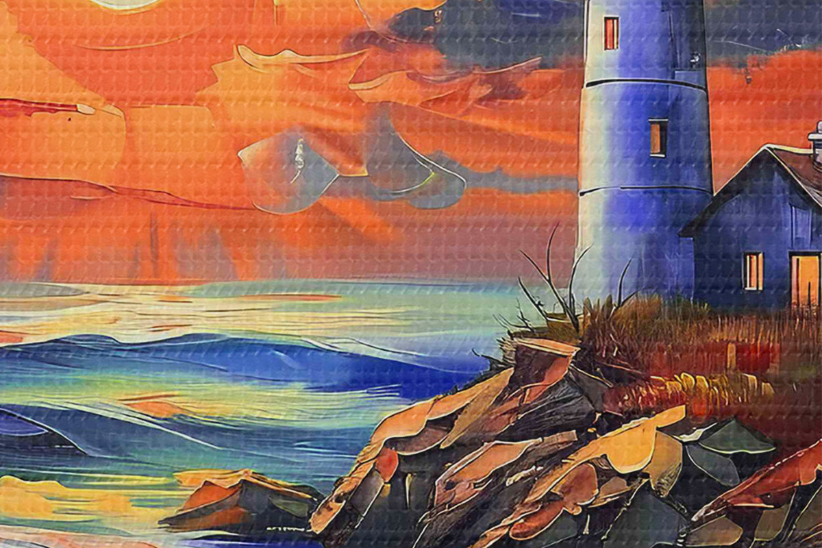 Quadri rotondi Faro al tramonto sulla riva del mare r38150
