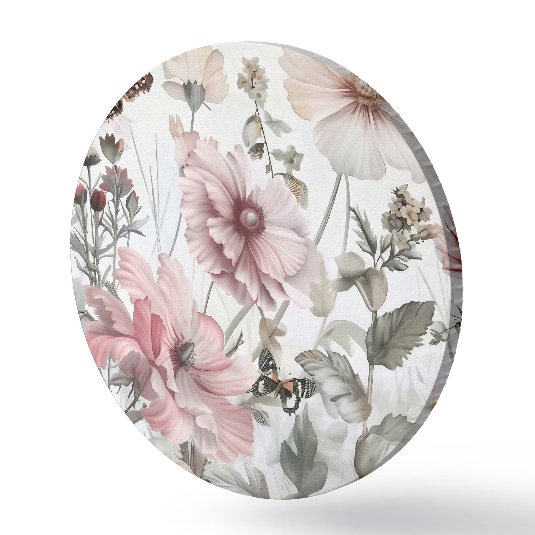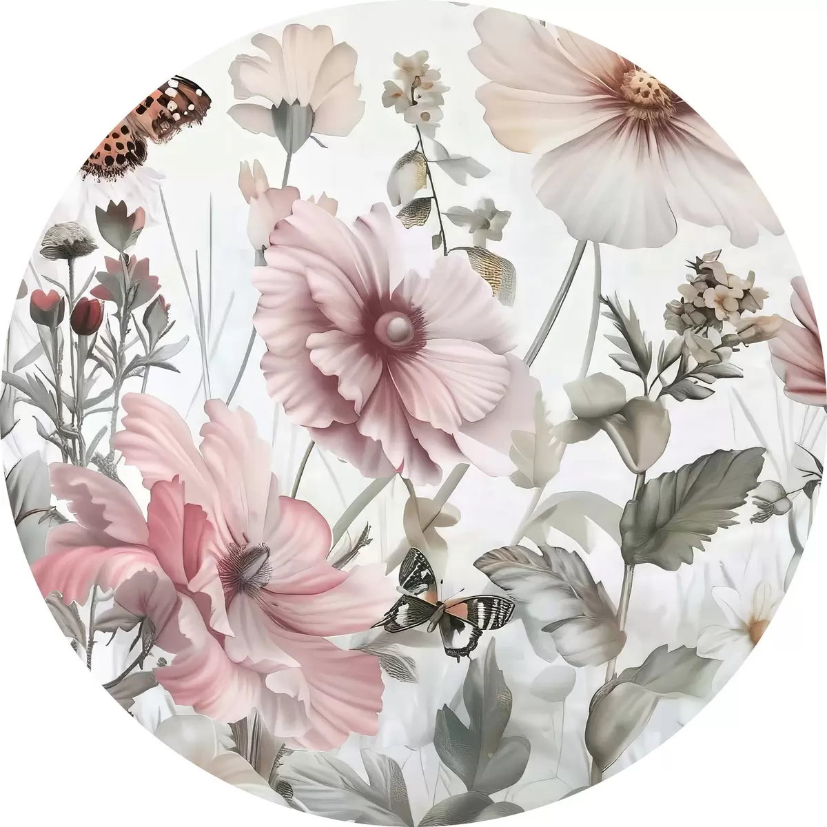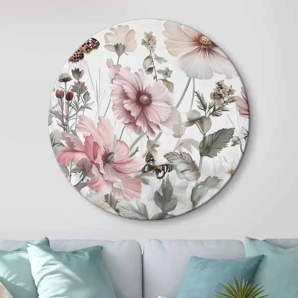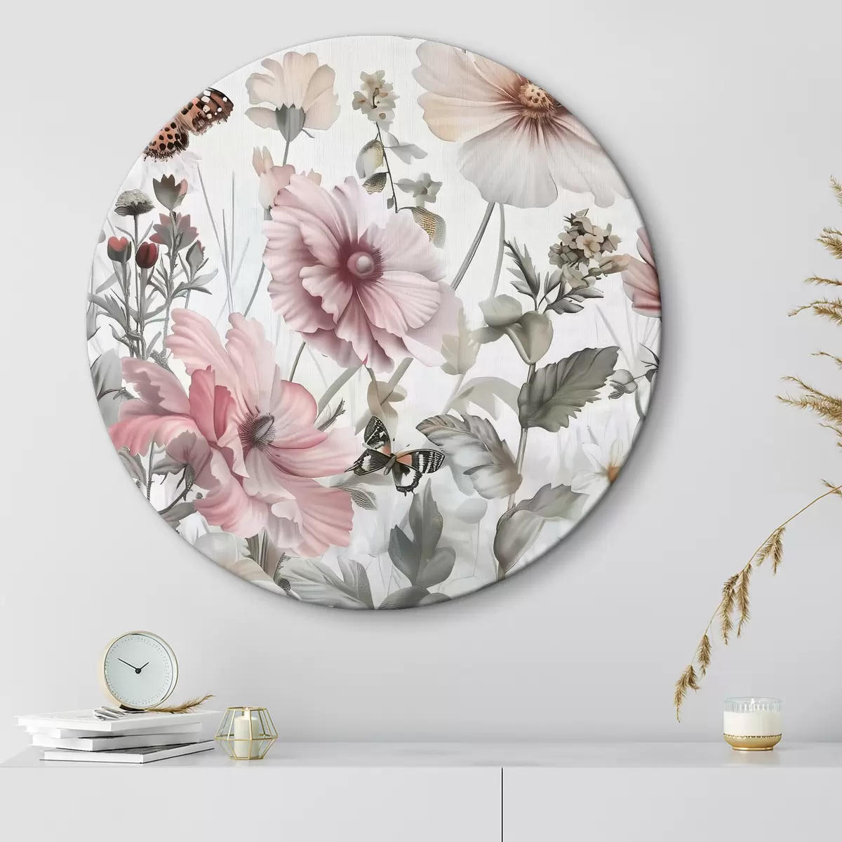 Quadri rotondi Primo piano di fiori e farfalle r38153