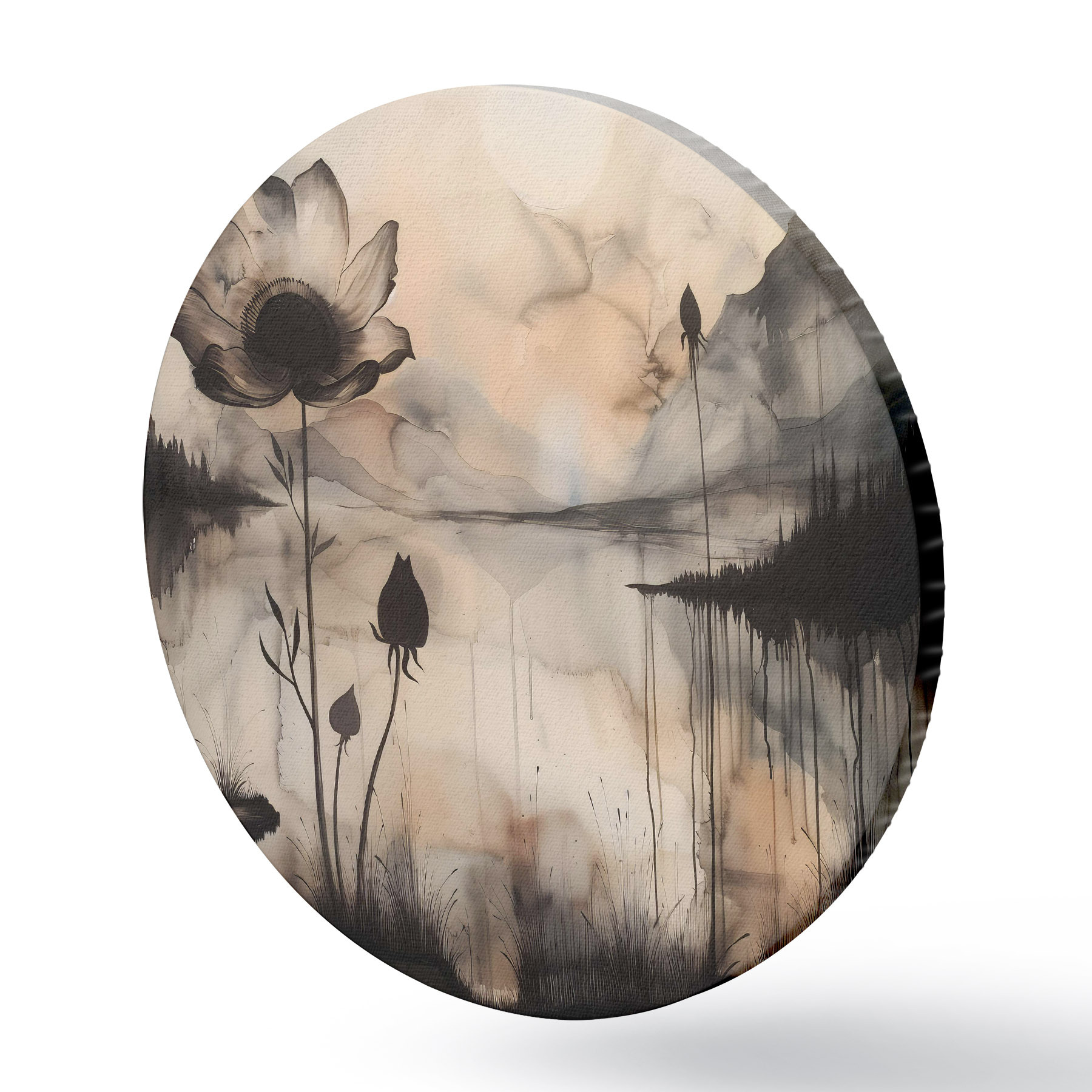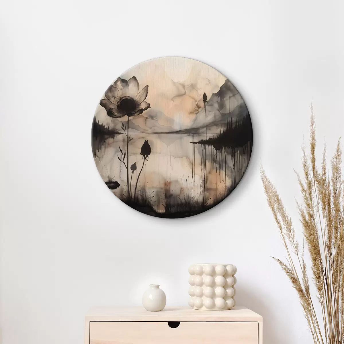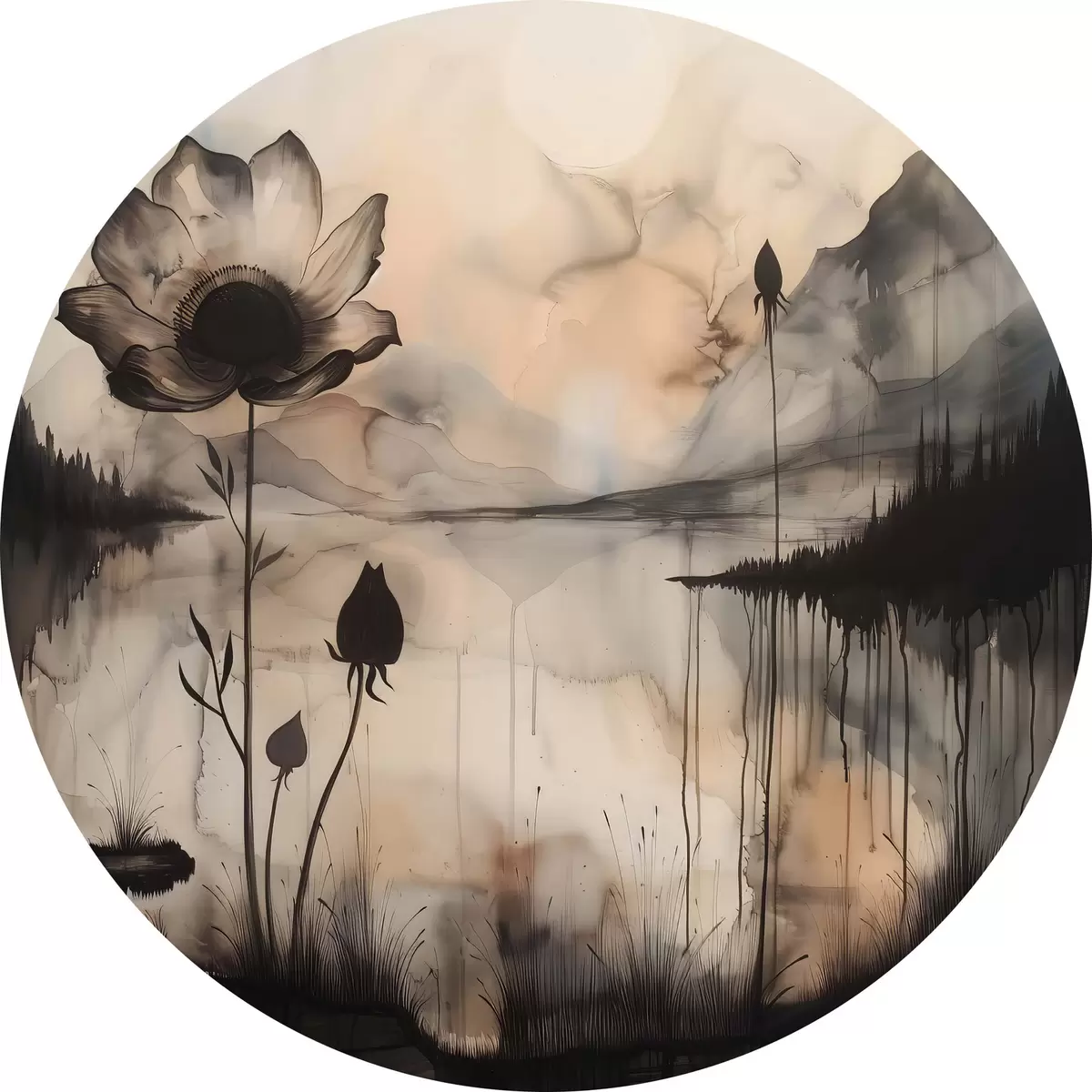 Quadri rotondi Il dipinto di un fiore e di un lago r38161