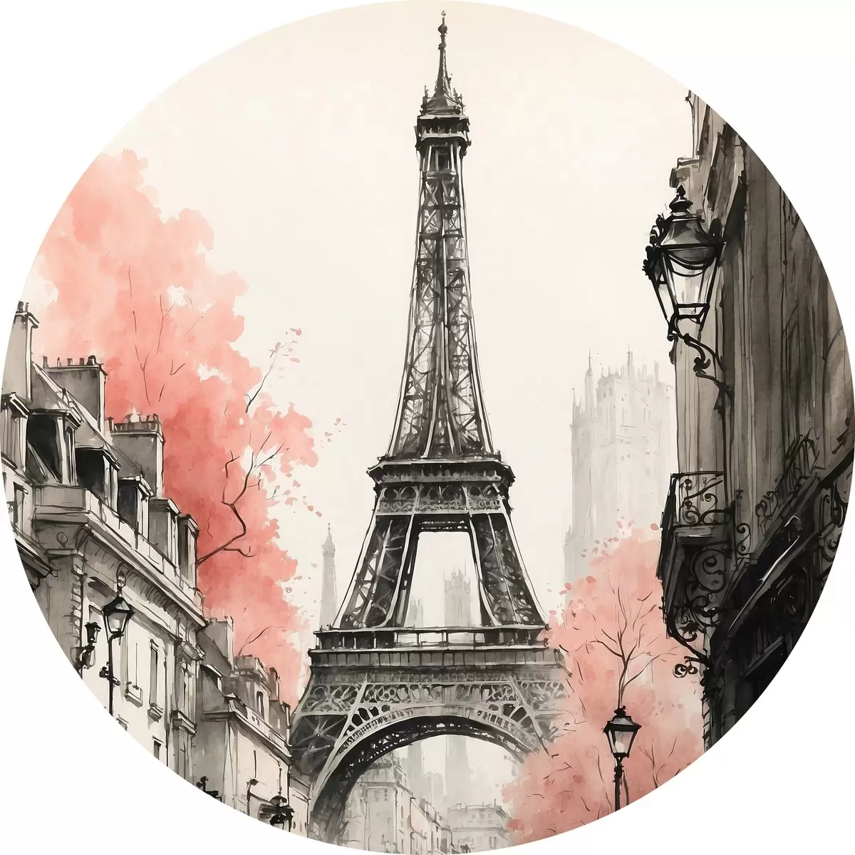 Quadri rotondi La Parigi del secolo scorso nei colori bianco e nero r38178