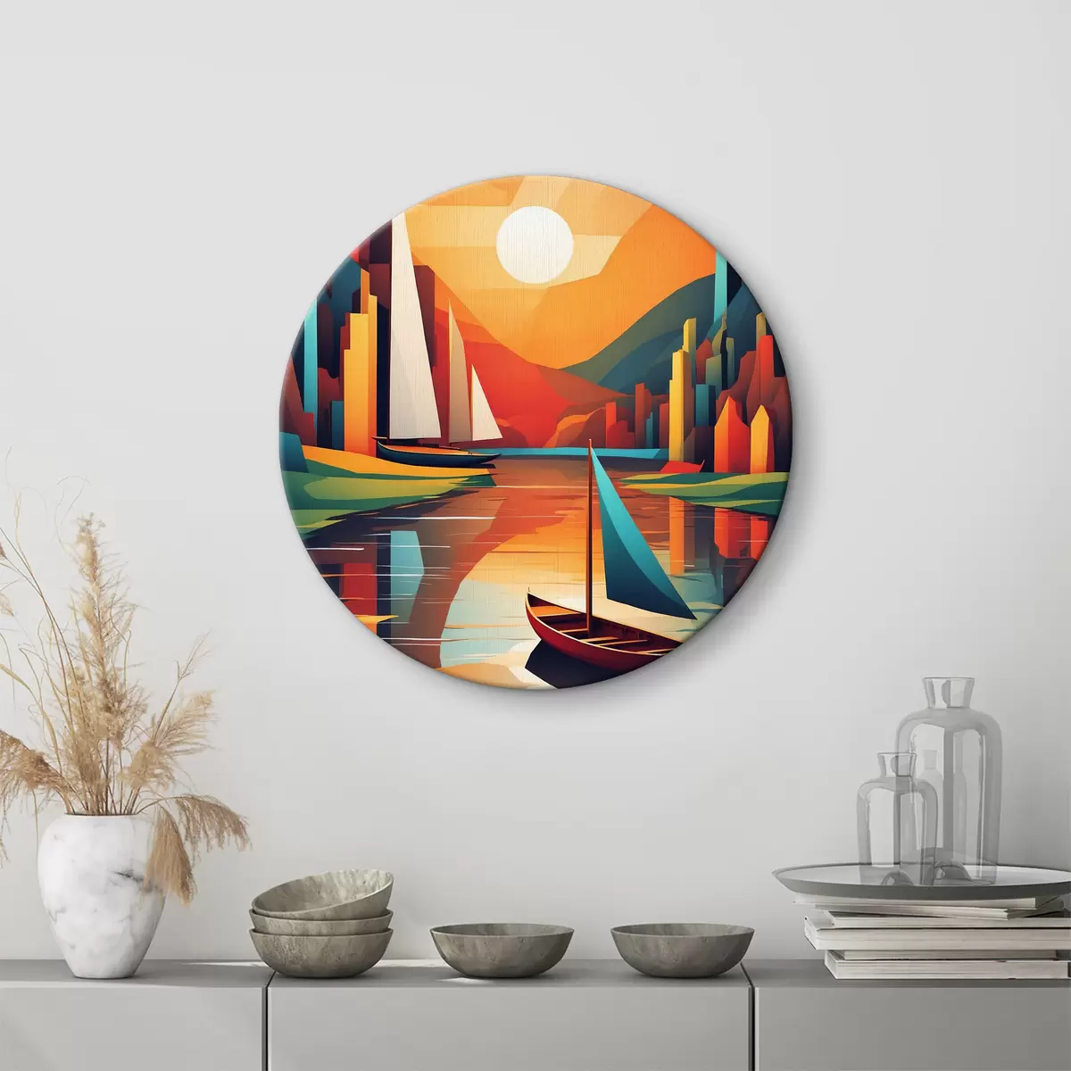 Quadri rotondi Barca sul fiume. Grafica vettoriale r38179